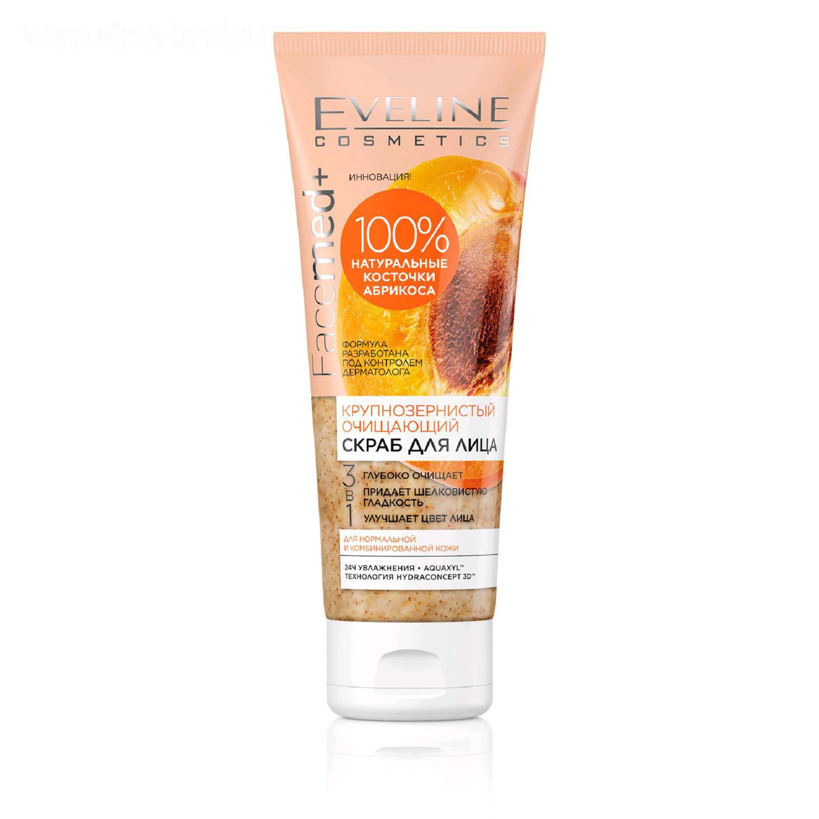 Скраб для лица 3 в 1 Eveline Facemed+, крупнозернистый, очищающий, 75 мл