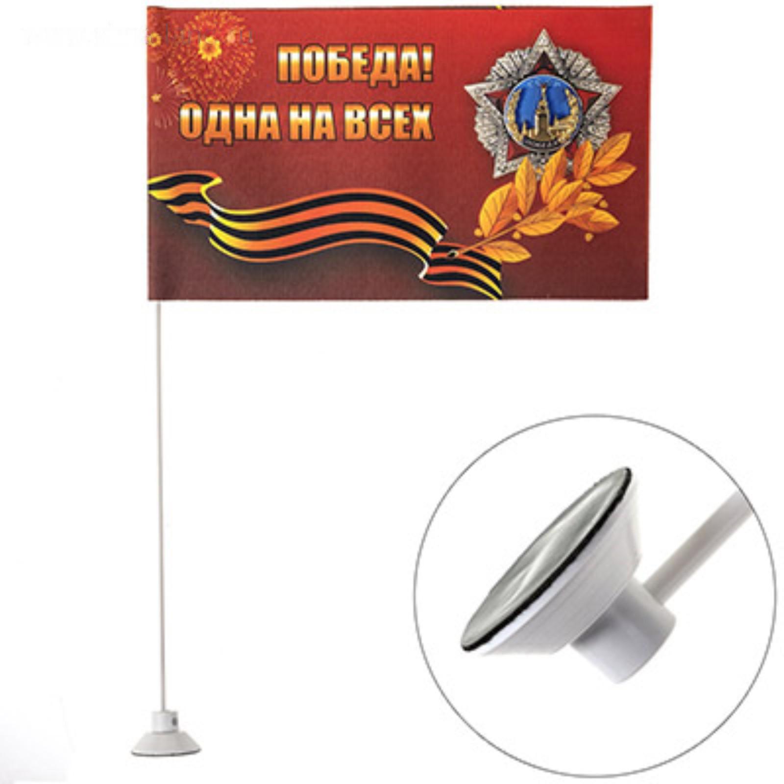 Флаг 9 мая «Победа одна на всех !» Орден, 145х250 мм, цветной на липучке, Skyway, S09201017