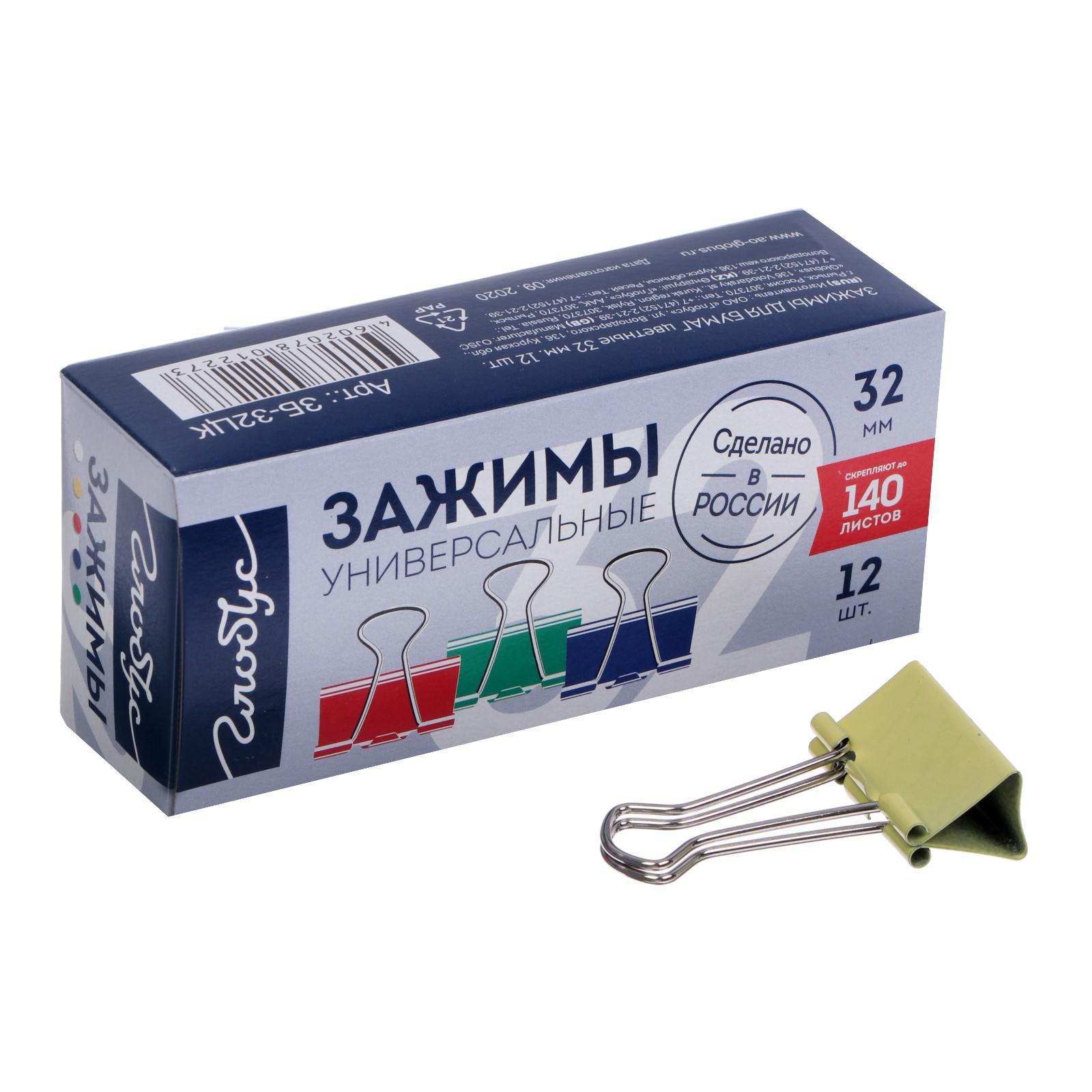 Зажимы для бумаг GLOBUS, 12 шт., 32 мм, цветные