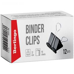 Зажимы для бумаг 32 мм, 12 штук, чёрные