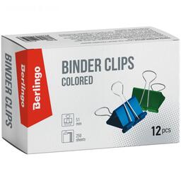 Набор зажимов для бумаг 51мм, 12 штук Berlingo, цветные, в коробке