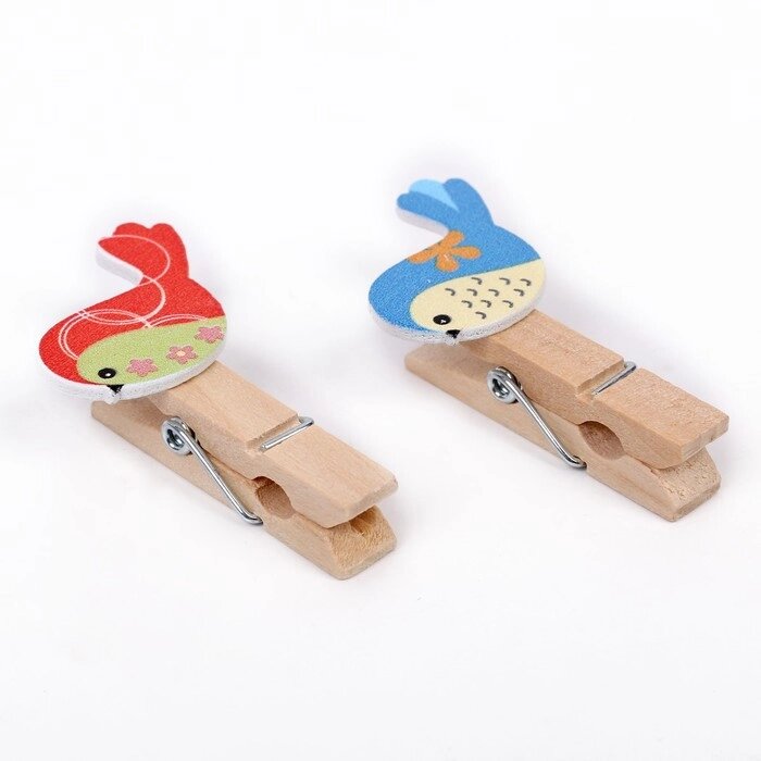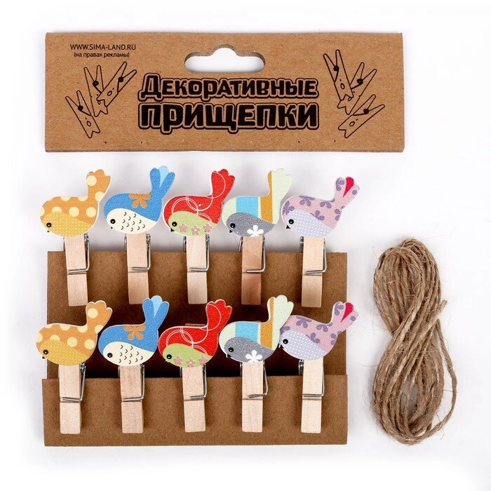 Прищепки декоративные с веревкой для подвеса "Весенние птички" набор 10 шт.