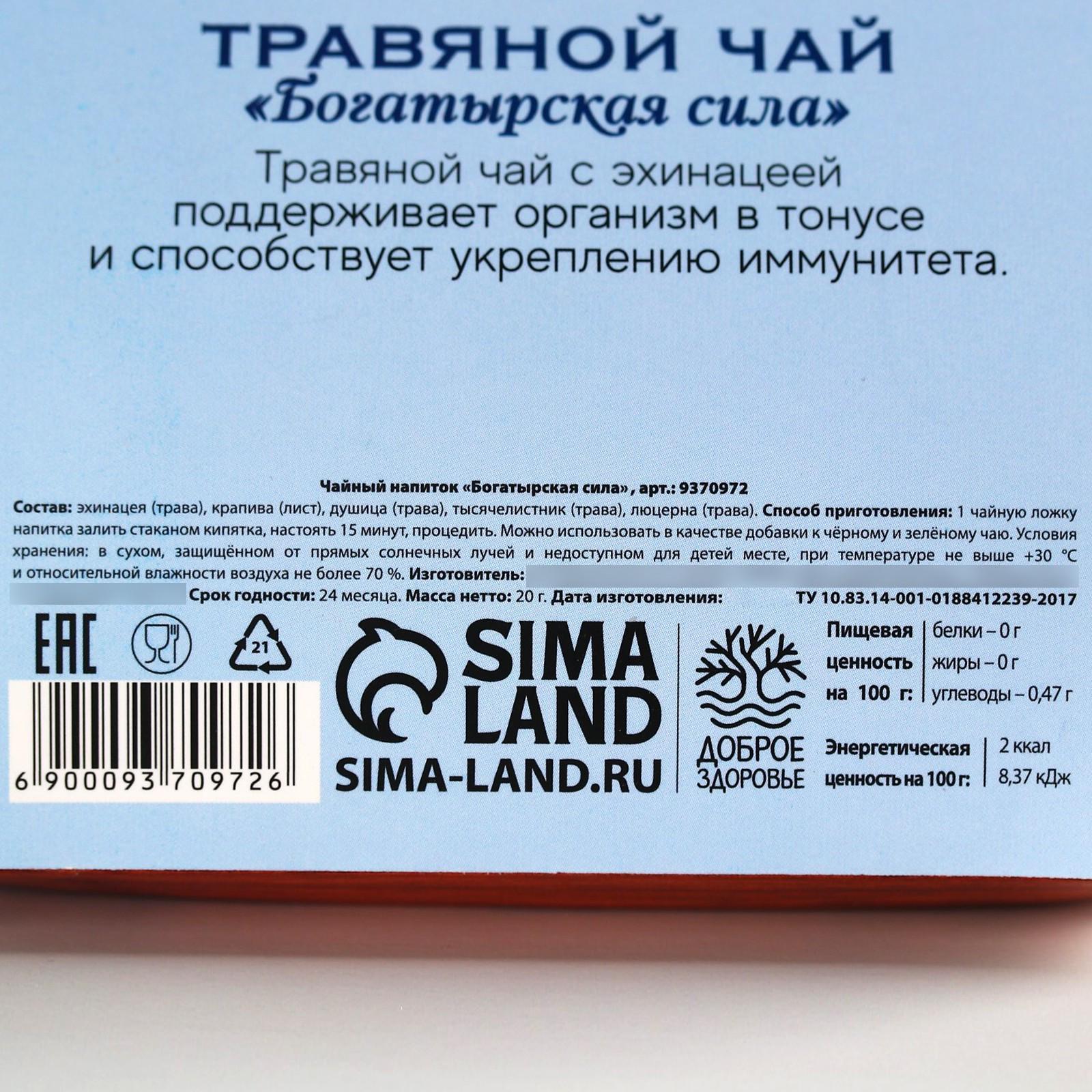 Чай травяной «С 23 февраля»: эхинацея, крапива, душица, тысячелистник, люцерна, 20 г.