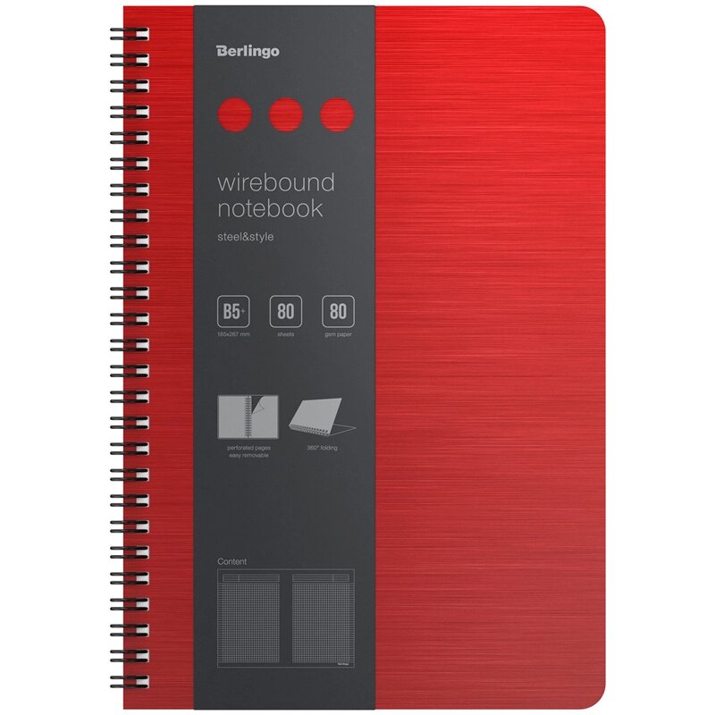 Тетрадь формат B5+80 л., клетка, на гребне, 80 г/м²пластик (полифом) обложка, линейка-закладка