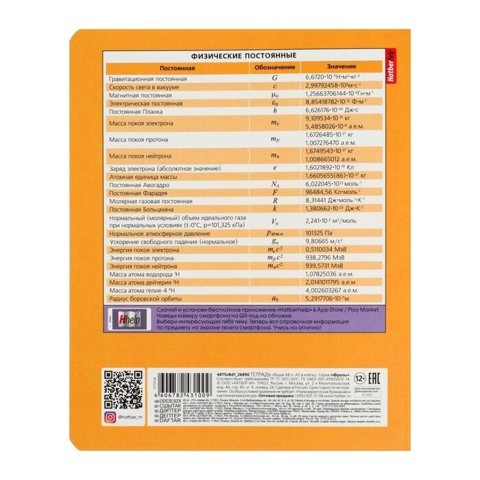 Тетрадь предметная, 48 листов в клетку, Физика, мелованный картон, скруглённые углы
