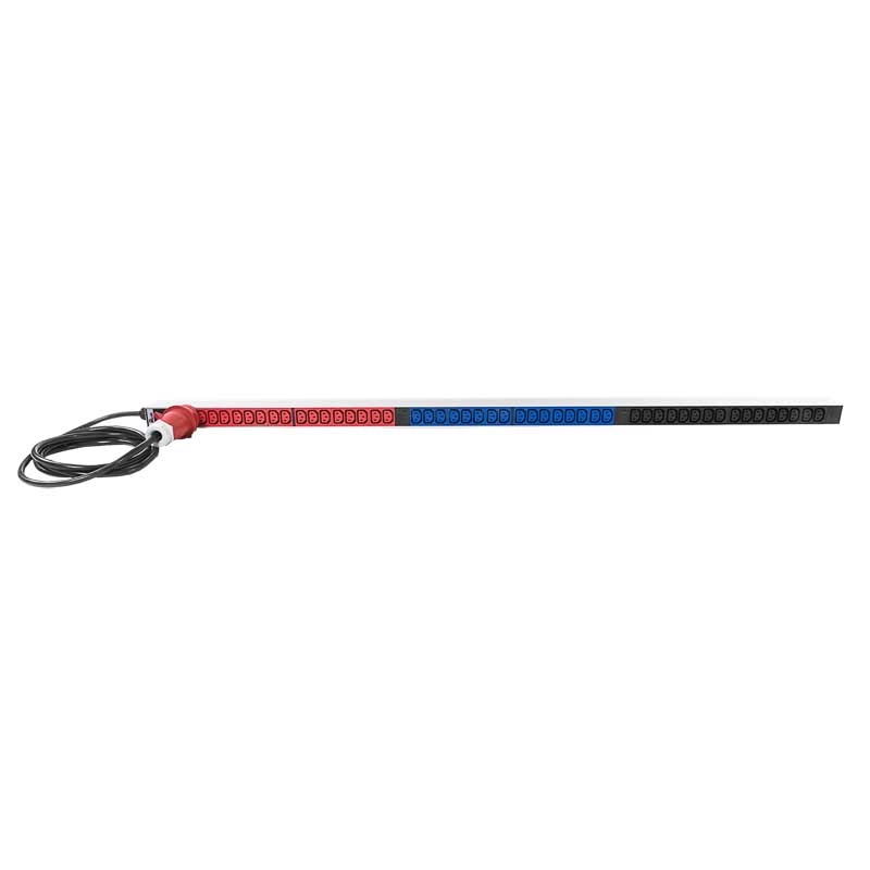 Блок розеток ЦМО - Rem-3x32, 3 х 32А, in (230V IEC-309 3P+N+E), out (400V 3PH 36xIEC-C320 C13), 3m, Вертикальный, автомат, индикатор, Zero U, цвет Серебристый, R-3x32-36C13-A-I-1420-3-3PN