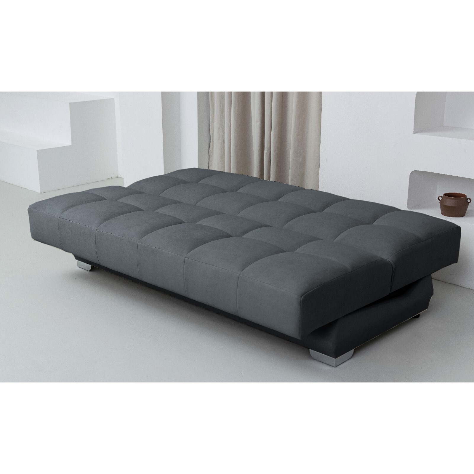 Прямой диван «Прайм 4», механизм книжка, независимый пружинный блок, велюр, цвет серый