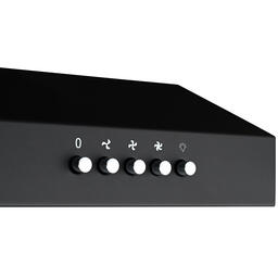Витяжка має три швидкості роботи різної продуктивності. Рівень шуму пристрою становить 56-63 дБ, що вважається зручним значенням.