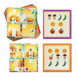 Для начала определитесь с уровнем игры – это легко сделать, посмотрев на цвет карточек. Зеленые – простые, сиреневые – самые сложные. А теперь приготовьтесь, ведь начинается игра! Итак, вы попали в чудесный сад со множеством цветов, фруктов и овощей. Игровое поле - магнитная доска. У Вас есть четыре детали разной формы. Задача – расположить их на доске так, чтобы остались только волшебные предметы, изображенные на карточке. Попробуйте решить головоломку!