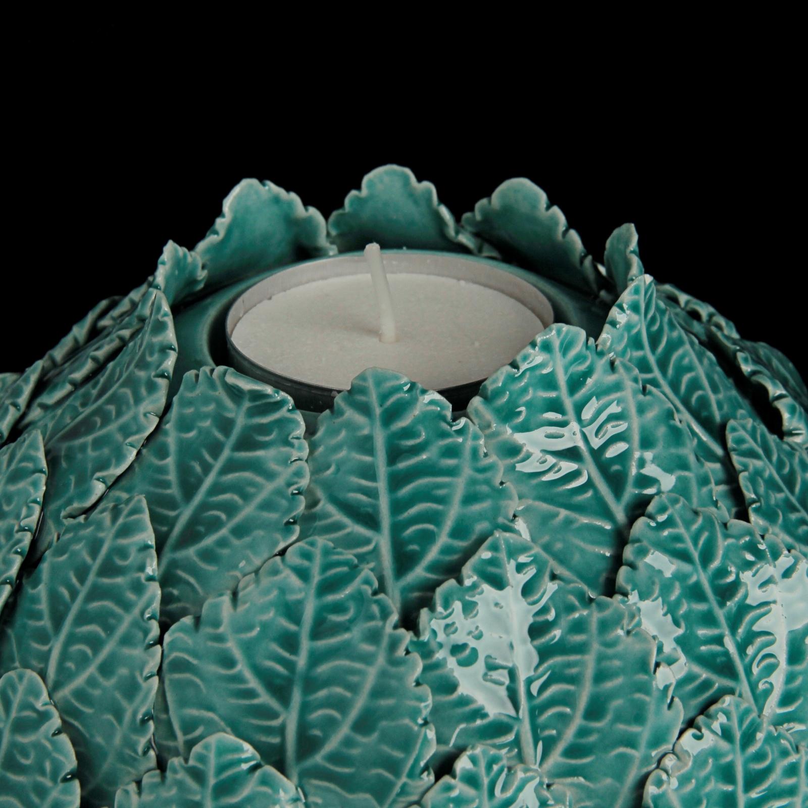 Подсвечник "Артишок" бирюзовый глянцевый, 12 × 12 × 12 см