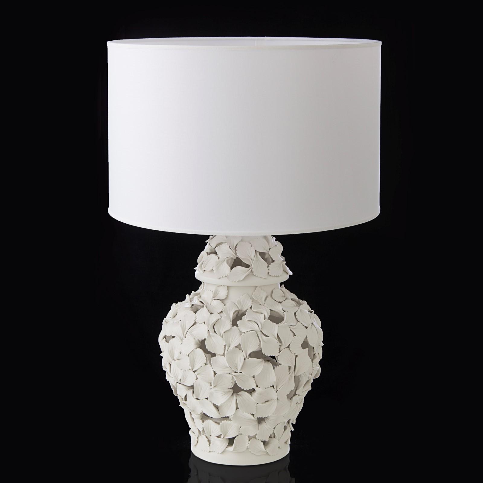 Каждое изделие ручной работы хранит в себе частичку души создавшего его мастера. Эта удивительная лампа выглядит так изысканно, что преображает окружающий интерьер, внося в него нежное дуновение свежести. Ее керамическое основание выполнено вручную и восхищает тонкостью работы и вниманием даже к мельчайшим деталям. Десятки тоненьких листиков словно слетелись к лампе, как мотыльки слетаются к огню. Они так изящны, что даже не верится, что керамика может принимать подобные формы. Такая лампа будет чудесным украшением комнаты, добавляющим ей тепла, света и того неповторимого уюта, благодаря которому комнату не захочется покидать.