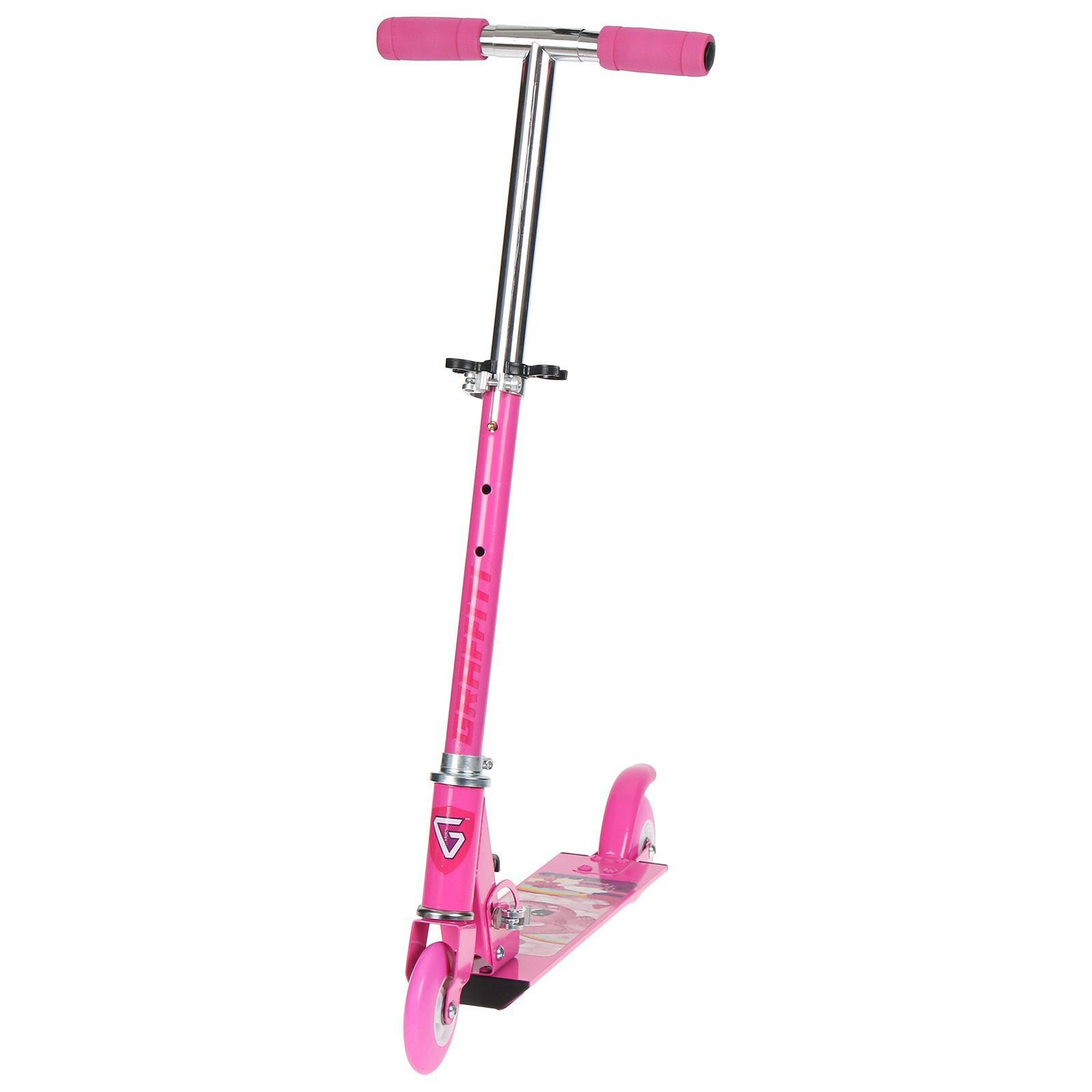 Рама складывается: рулевая стойка опускается к деке. В таком состоянии самокат занимает мало места. Платформа с шероховатым покрытием предотвращает скольжение ног. Высота руля регулируется и фиксируется в трёх положениях.