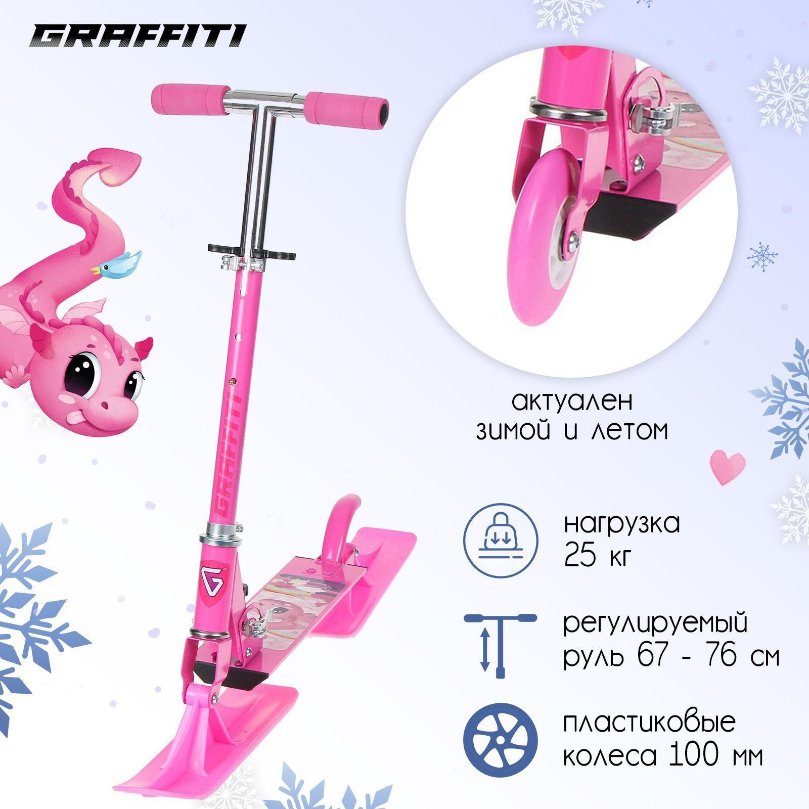 Самокат-снегокат зимний 2 в 1 «Дракоша», цвет розовый