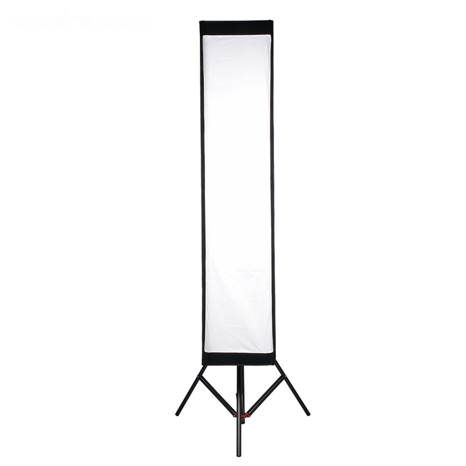 Софтбокс с байонетом Bowens создаёт мягкое рассеянное освещение без резких теней и бликов. Используется при съёмке ростовых портретов, создавая градиентную подсветку. В предметной съёмке применяется для получения длинного и яркого блика.
