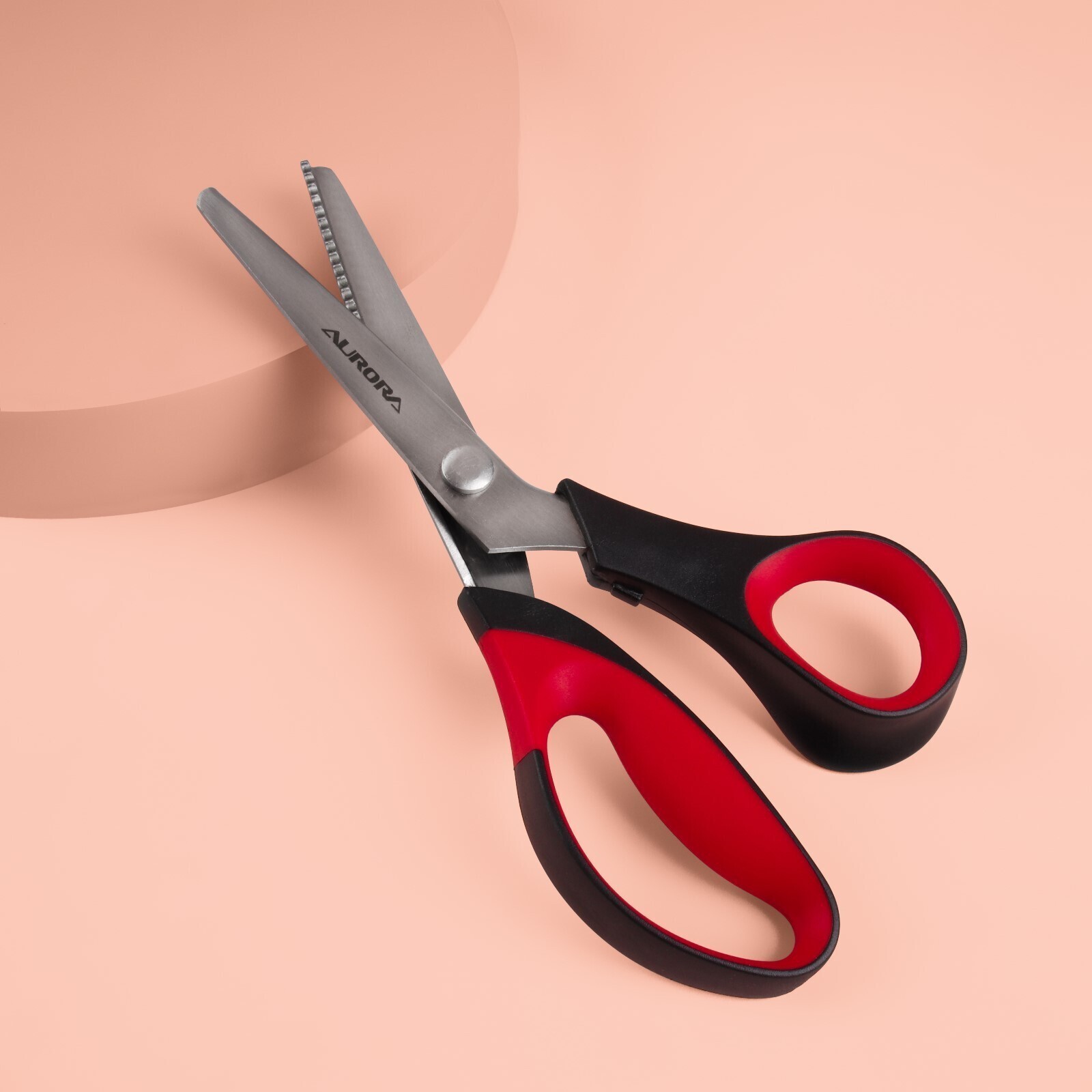 Ножницы «Волна», 23 см, шаг - 3,5 мм, цвет чёрный/красный