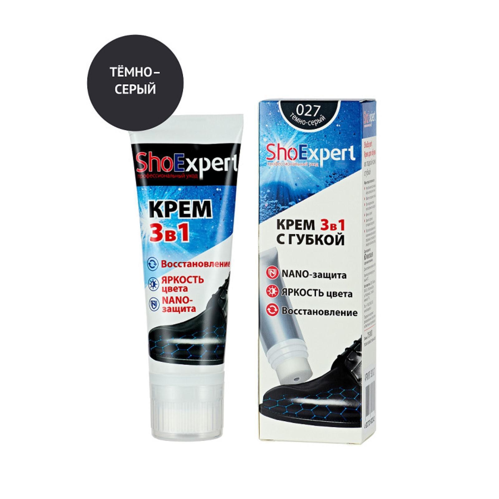 Крем для обуви SHOExpert, туба с губкой, тёмно-серый, 75 мл