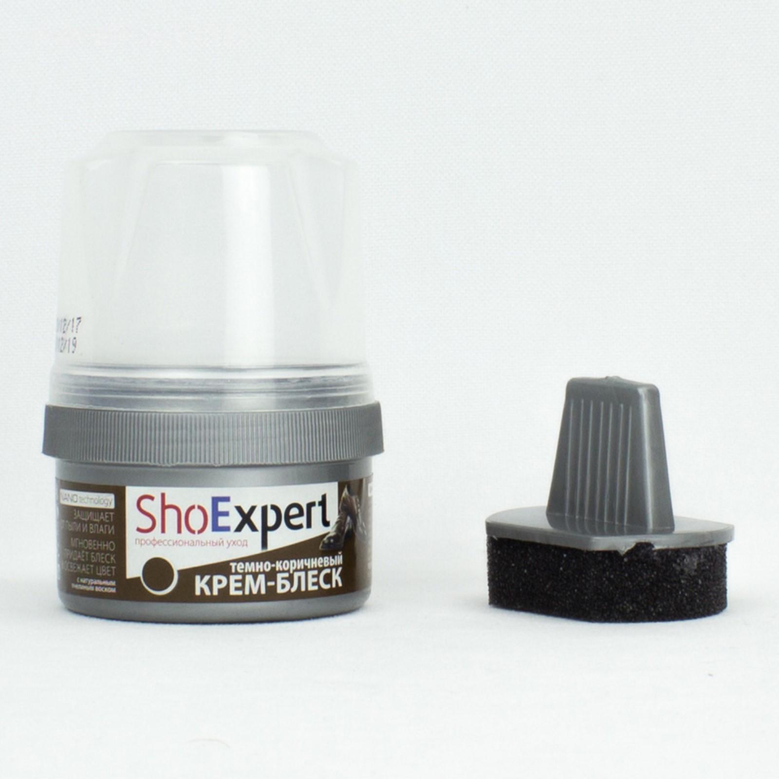 Крем-блеск для обуви SHOExpert, цвет тёмно-коричневый, банка с губкой, 60 мл