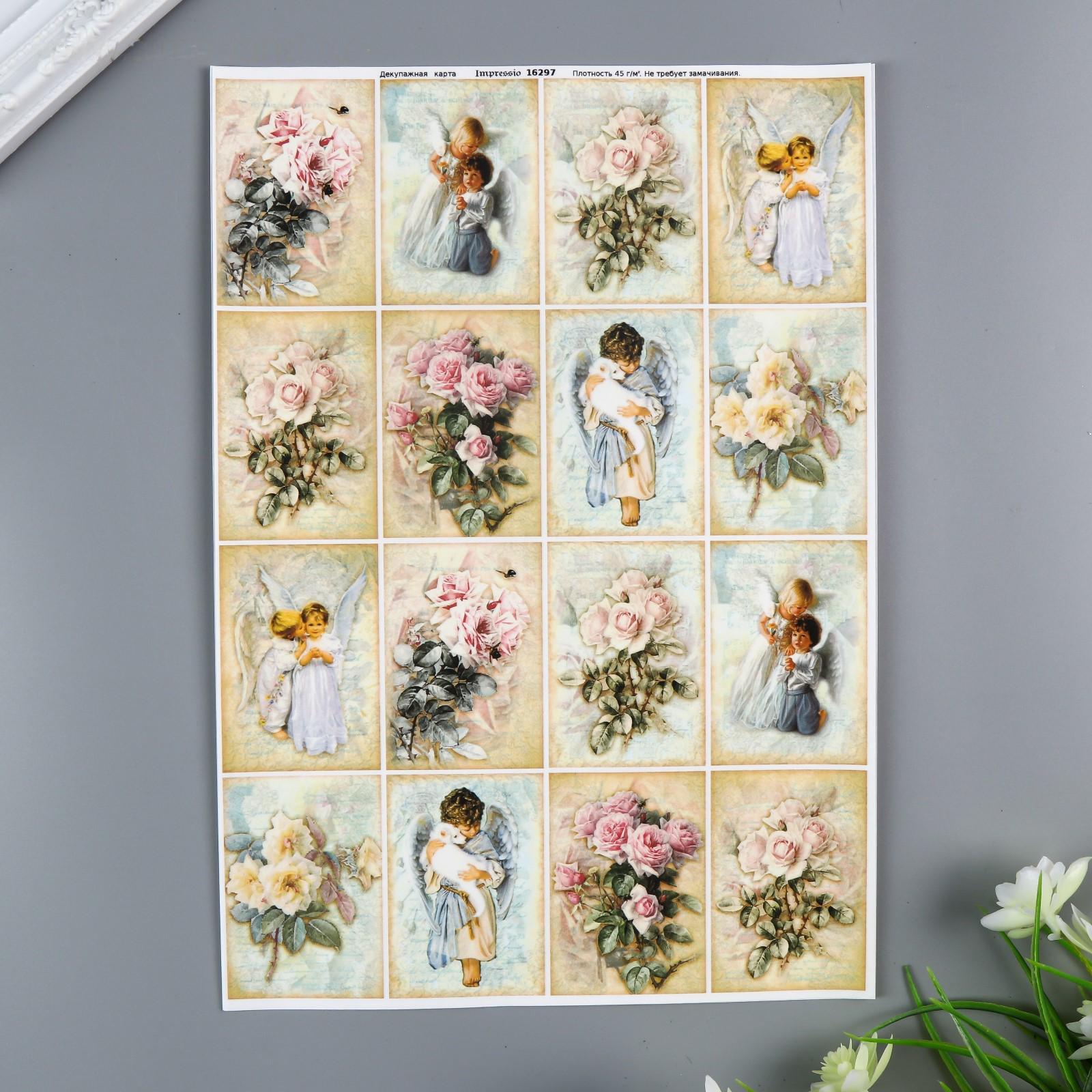 Декупажная карта "Ангелочки и цветы" плотность 45г/м2,формат А4