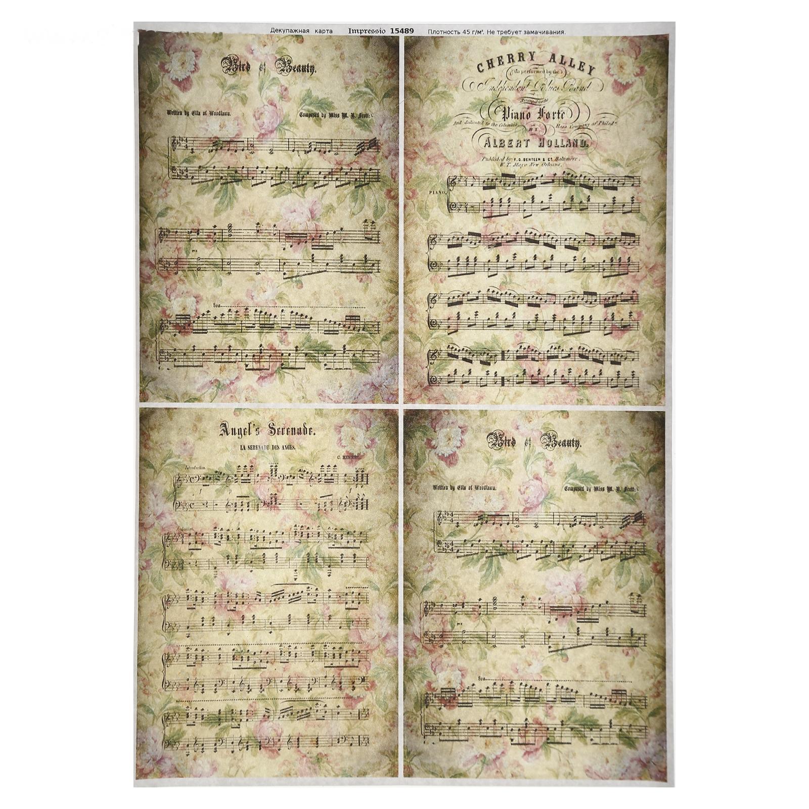 Декупажная карта "Ноты", плотность 45 г/м2,формат А4