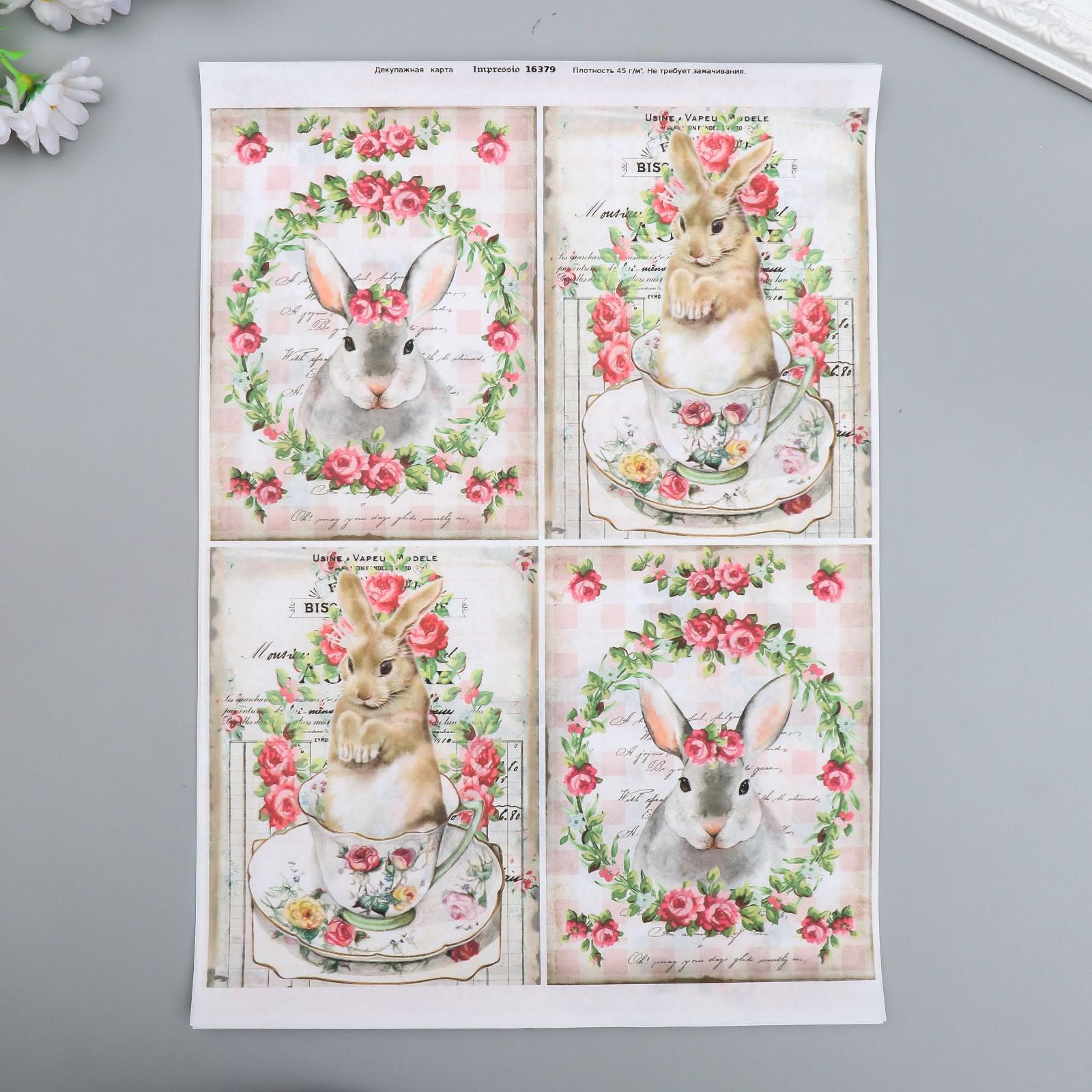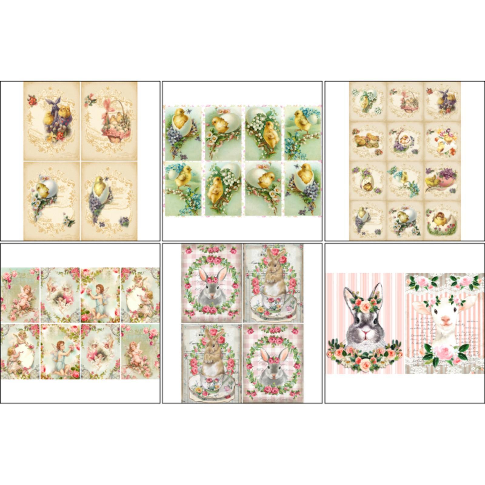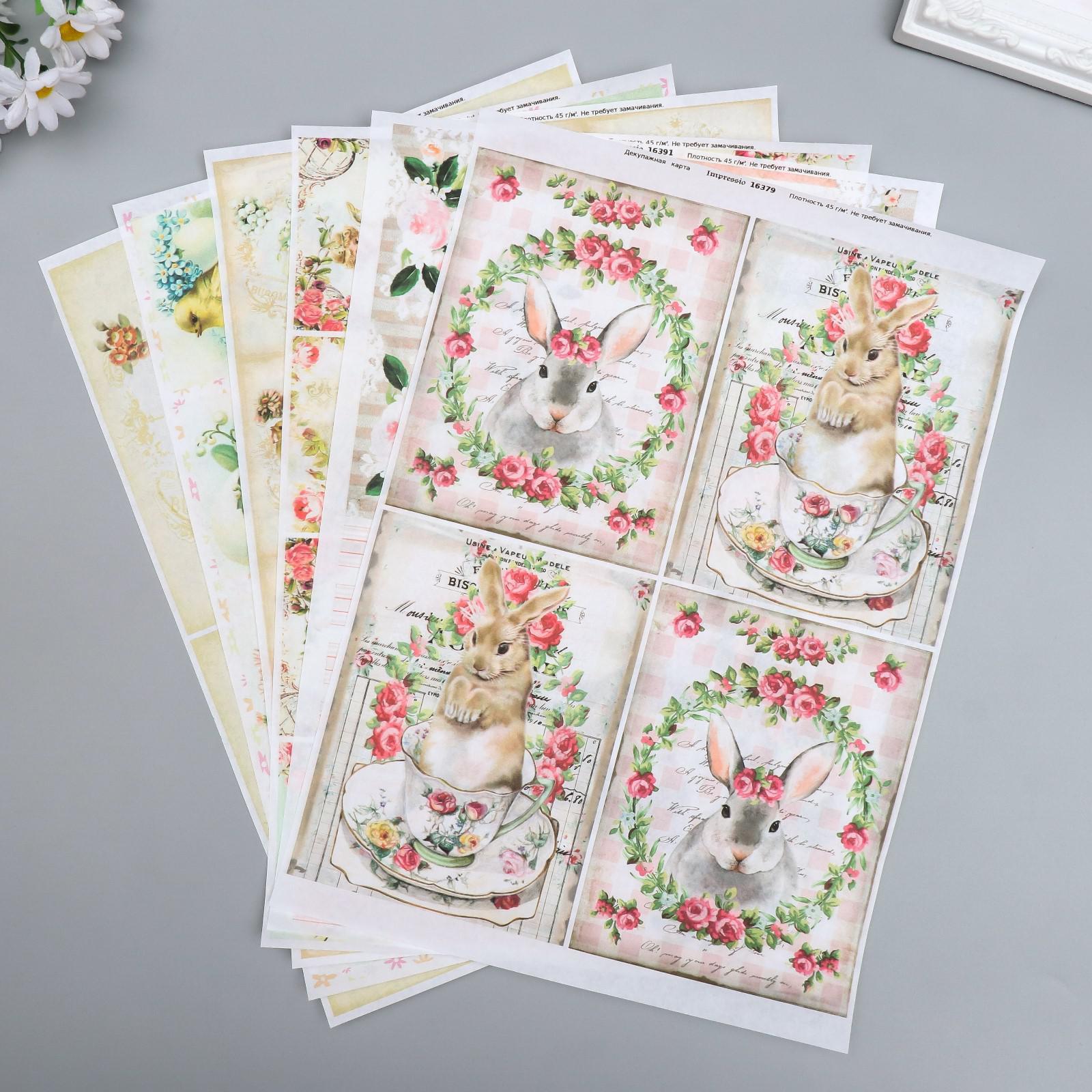 Набор декупажных карт 6 шт "Зайки,цыплятки" плотность 45г/м2