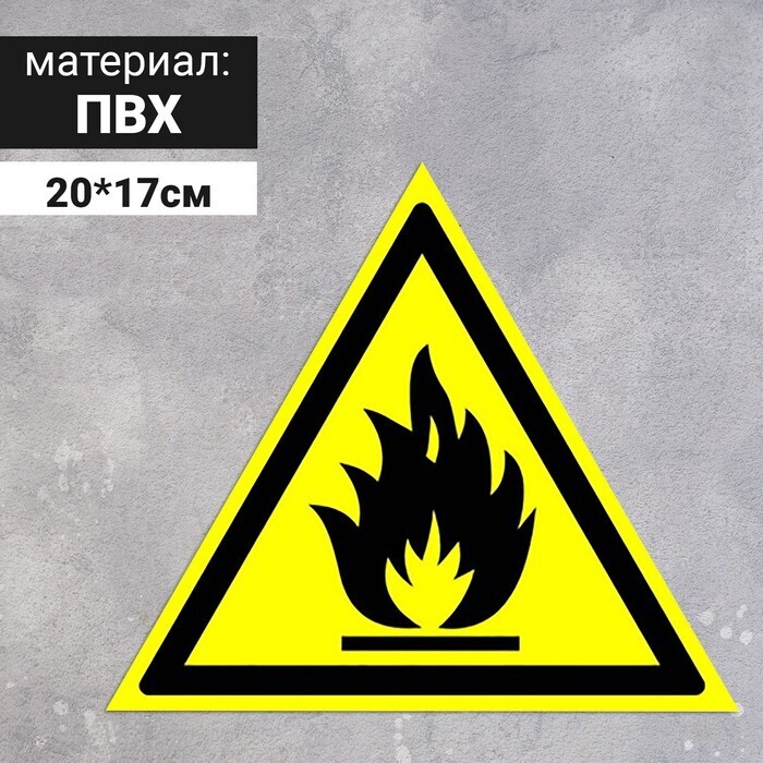 Табличка "Пожароопасно! легковоспламеняющиеся вещества", 200 мм