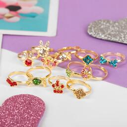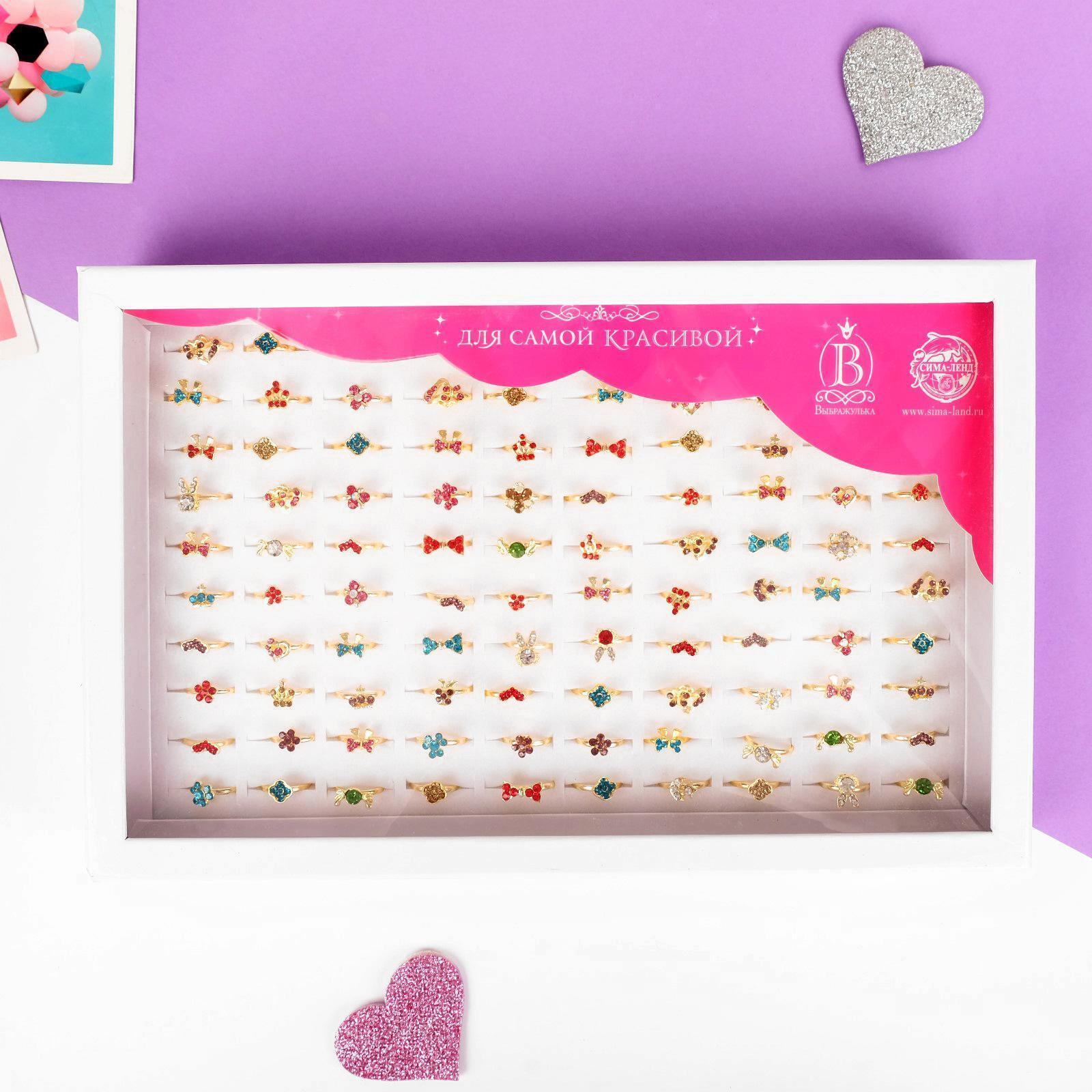 Кольцо детское "Выбражулька" со стразами, форма МИКС, цвет МИКС в золоте, фас 100 шт