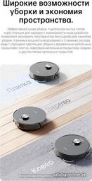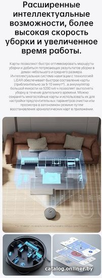 • Функциональные особенности пылесоса локальная уборка, уборка по расписанию, виртуальная стена в приложении, автовозврат на базу, определение ковров