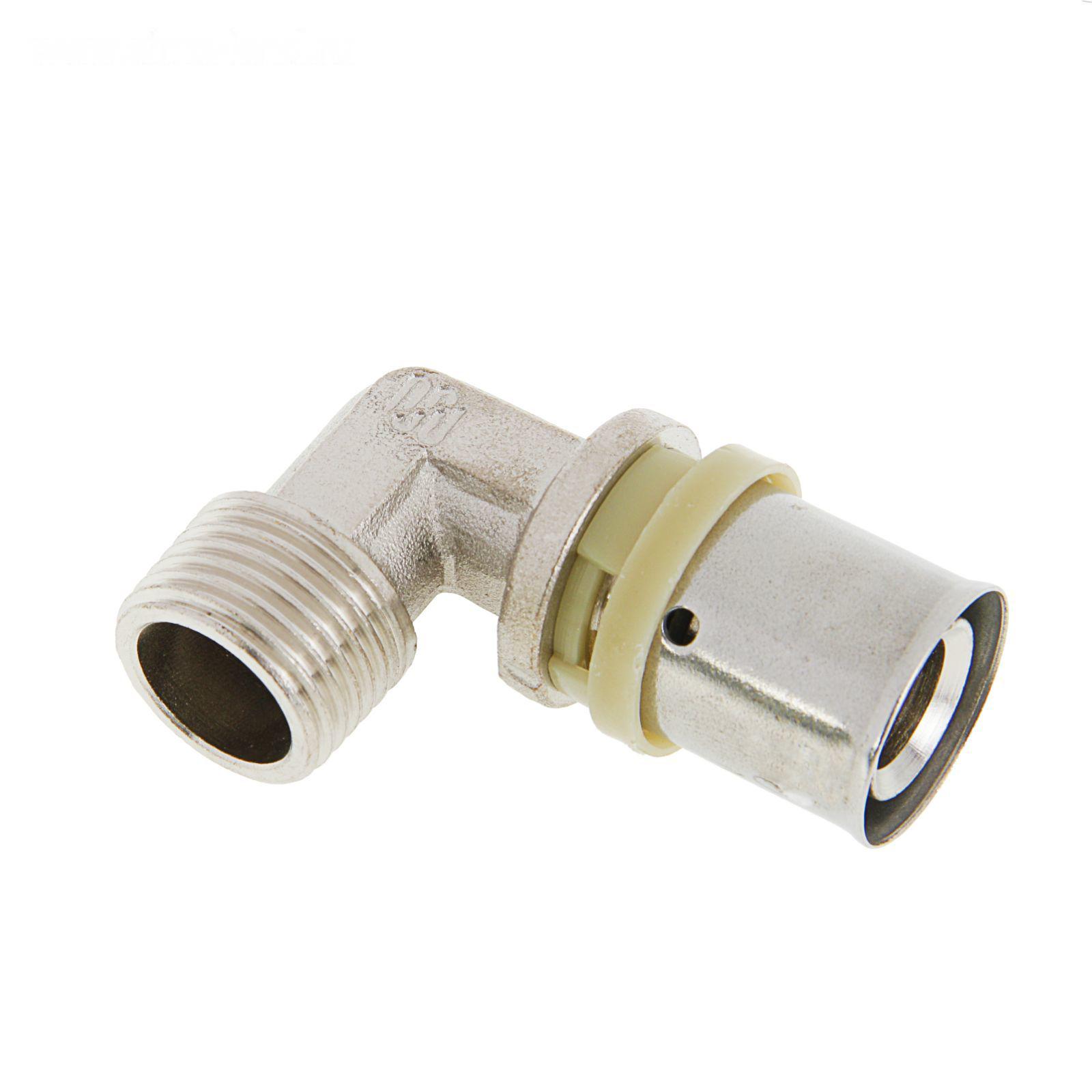 Изделие предназначено для скрепления металлопластиковых труб и запорной арматуры с внутренней резьбой под углом 90 градусов в единую систему водоснабжения. Герметичность монтажа обеспечивается деформацией стальной втулки, которая происходит при сдавливании фитинга пресс-клещами.