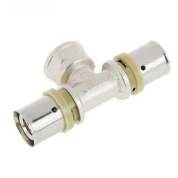 Тройник предназначен для подключения запорной арматуры с наружной резьбой, а также для скрепления сразу трёх металлопластиковых труб в единую систему водоснабжения. Герметичность монтажа обеспечивается деформацией стальной втулки, которая происходит при сдавливании фитинга пресс-клещами.