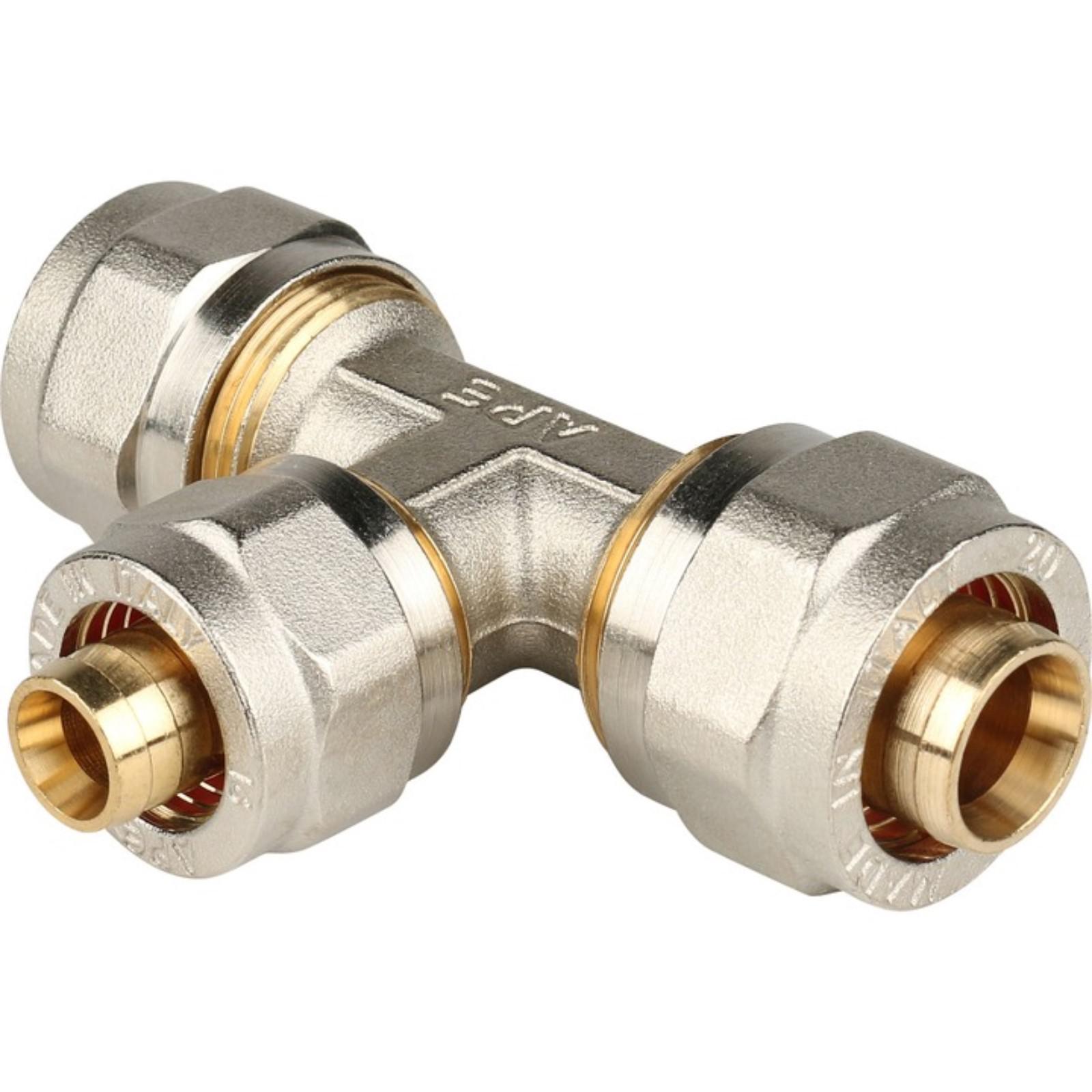Тройник STOUT SFS-0010-201620, d=20х16х20 мм, для металлопластиковых труб, винтовой