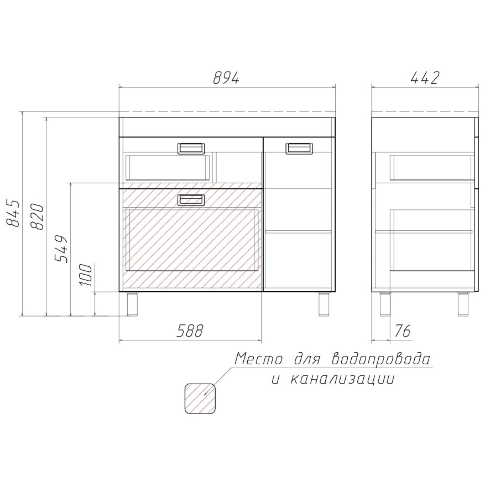 Комплект мебели для ванной "Elen 90" Cube с 2 верхними ящиками
