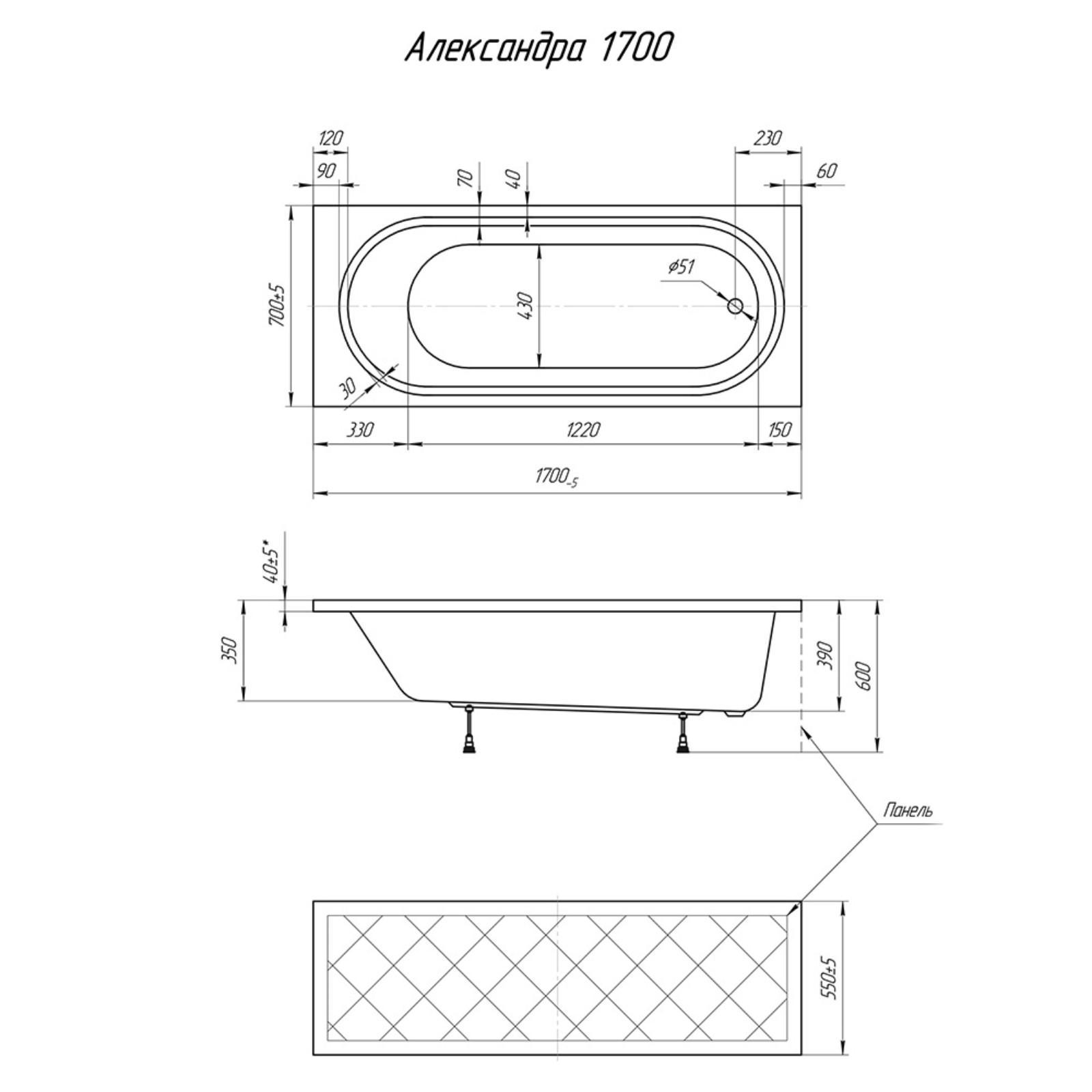 Ванна акриловая Poseidon "Александра", 150х70 см
