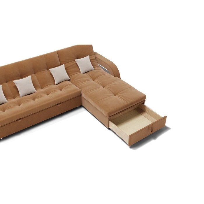 Угловой диван "Майами 2", механизм венеция, угол правый, велюр, цвет селфи 10 / подушки 01