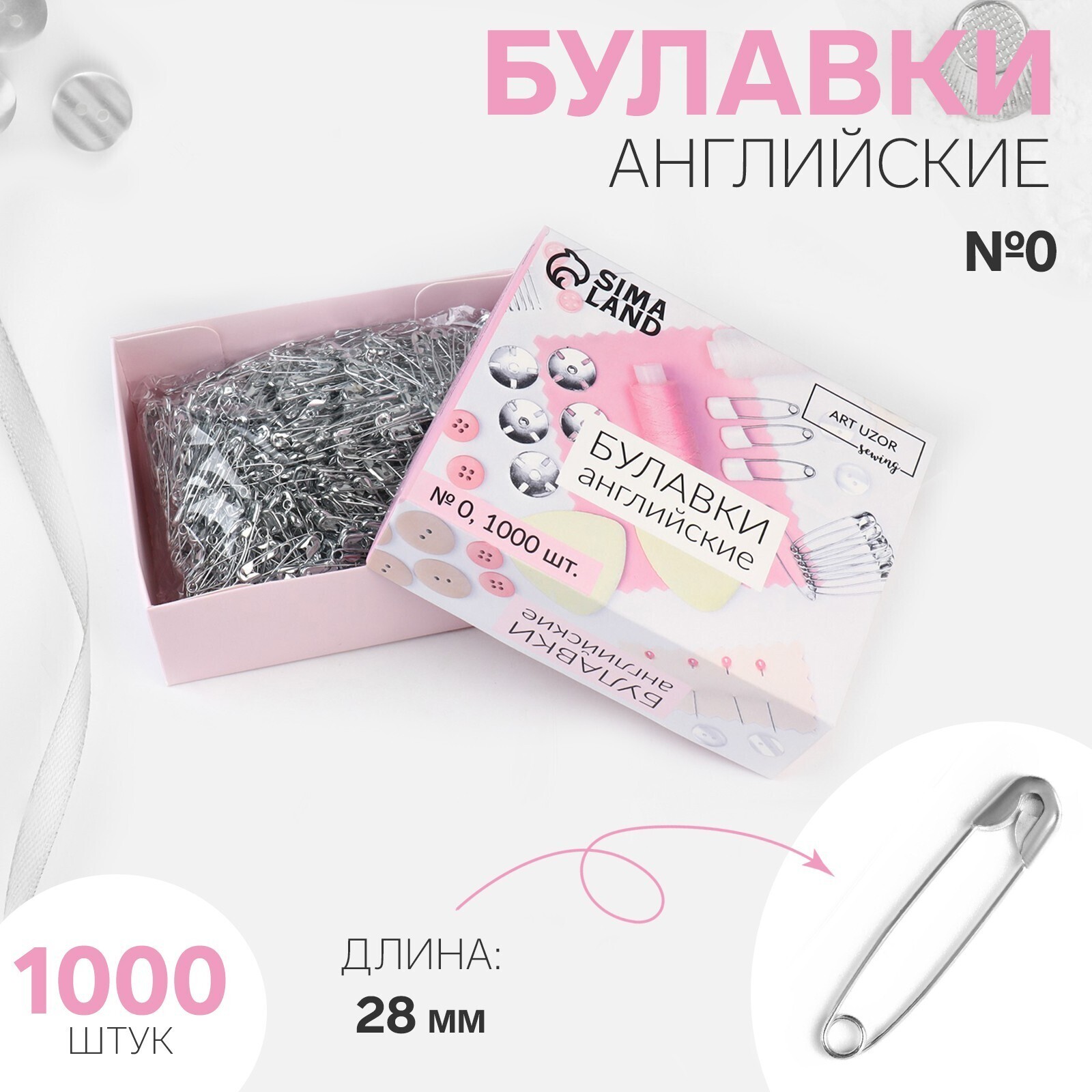 Булавки английские №0, 28 мм, 1000 шт, цвет серебряный
