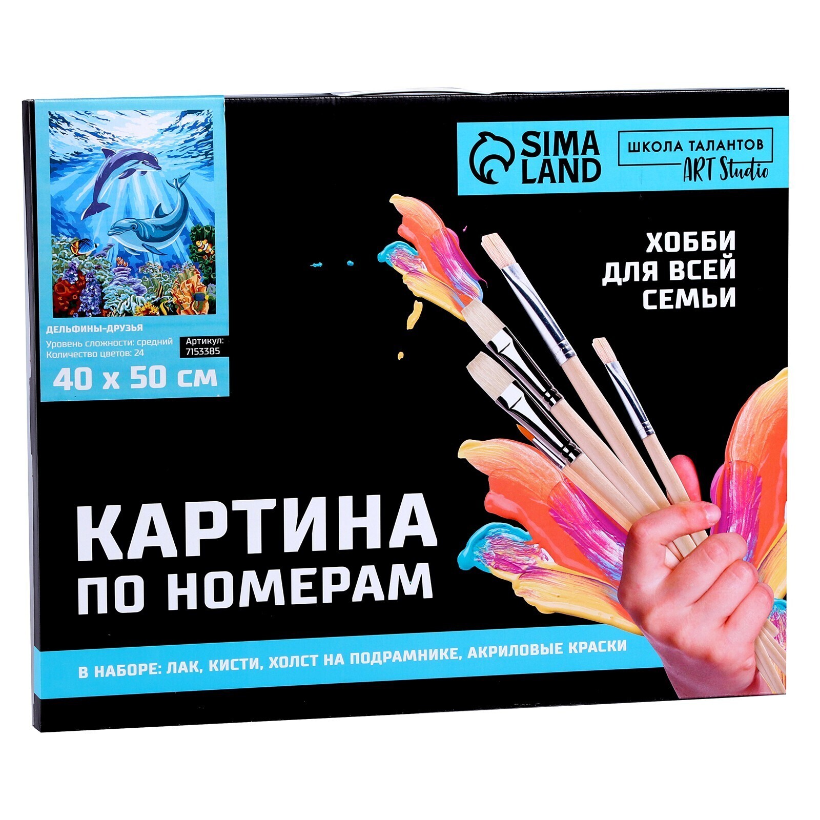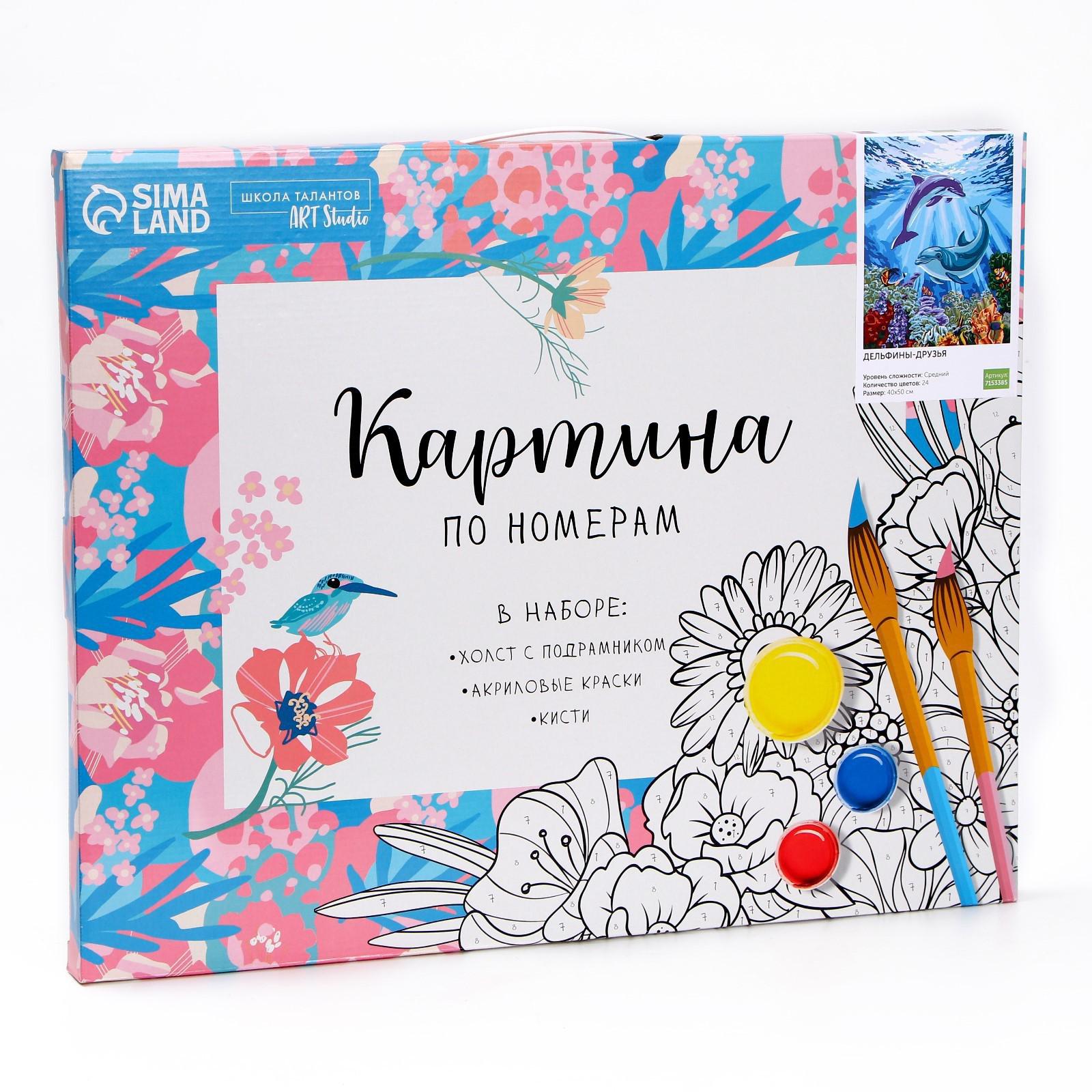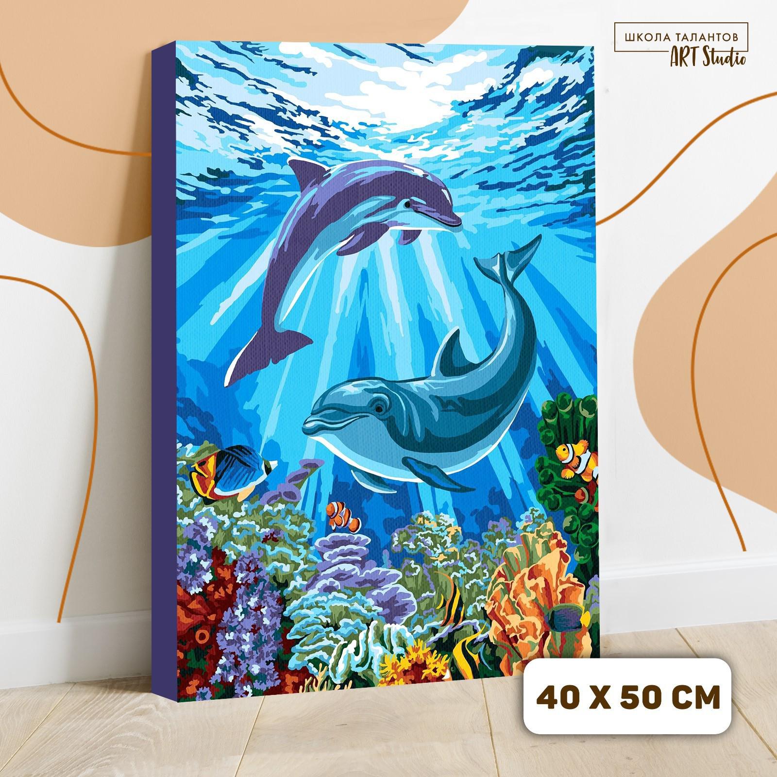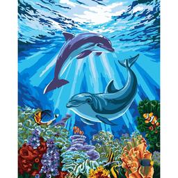Картина по номерам на холсте с подрамником «Дельфины-друзья» 40х50 см