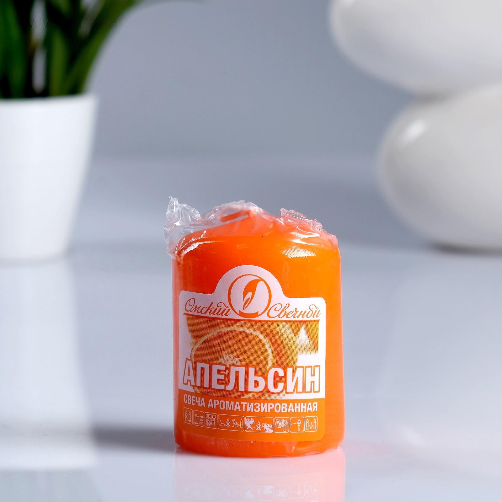 Свеча - цилиндр ароматическая "Апельсин", 4х5 см, 7 ч, 50 г, оранжевая