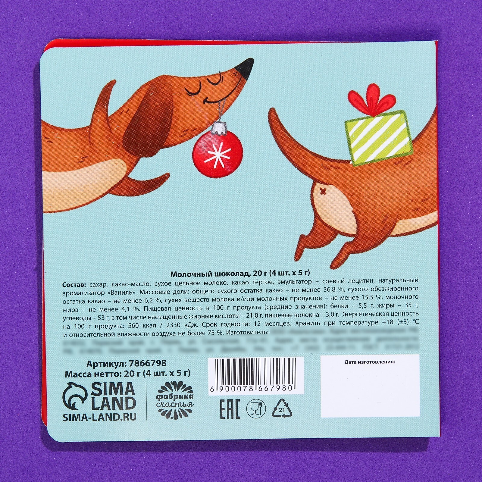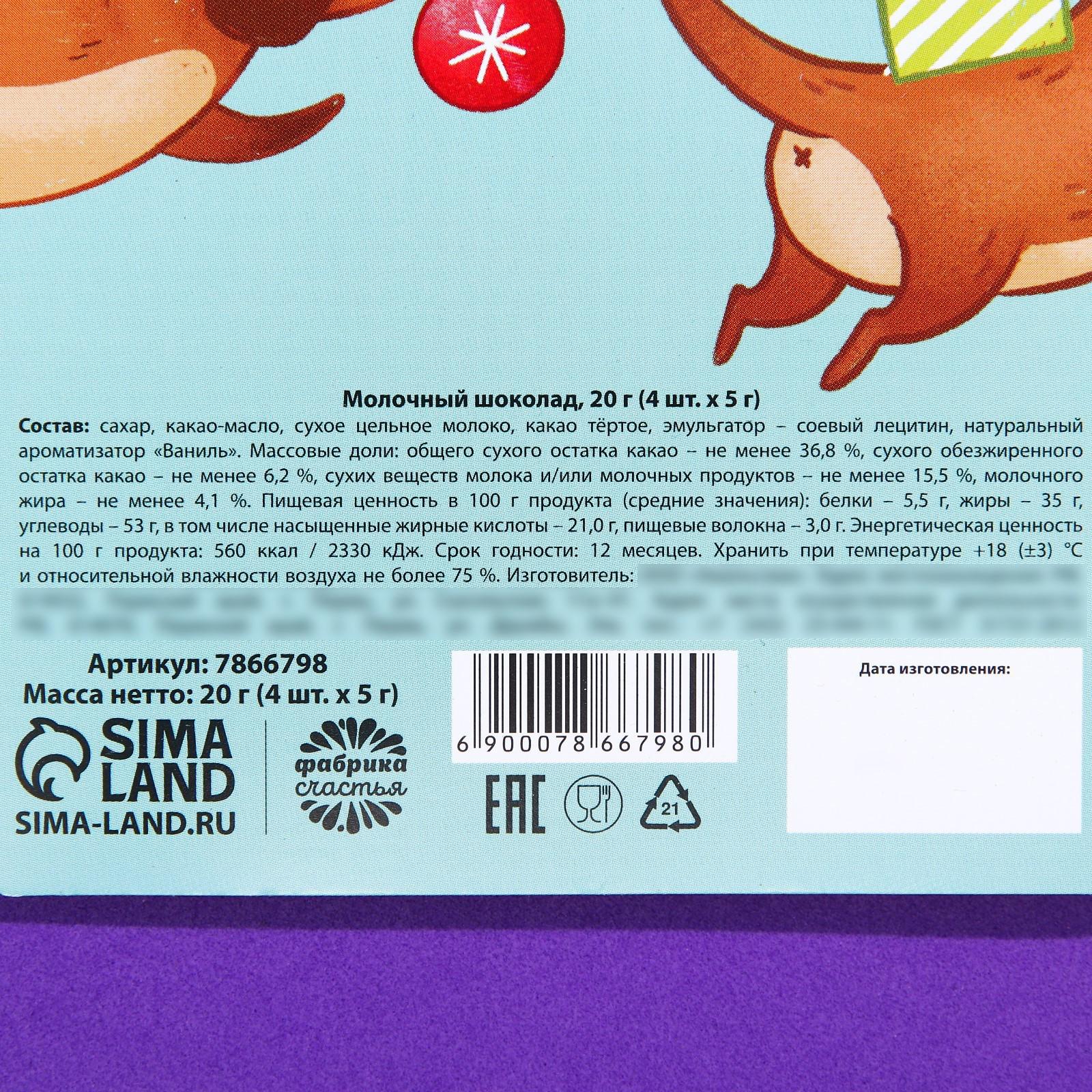 Подарочный молочный шоколад «Новогоднее предсказание», 5 г. x 4 шт.