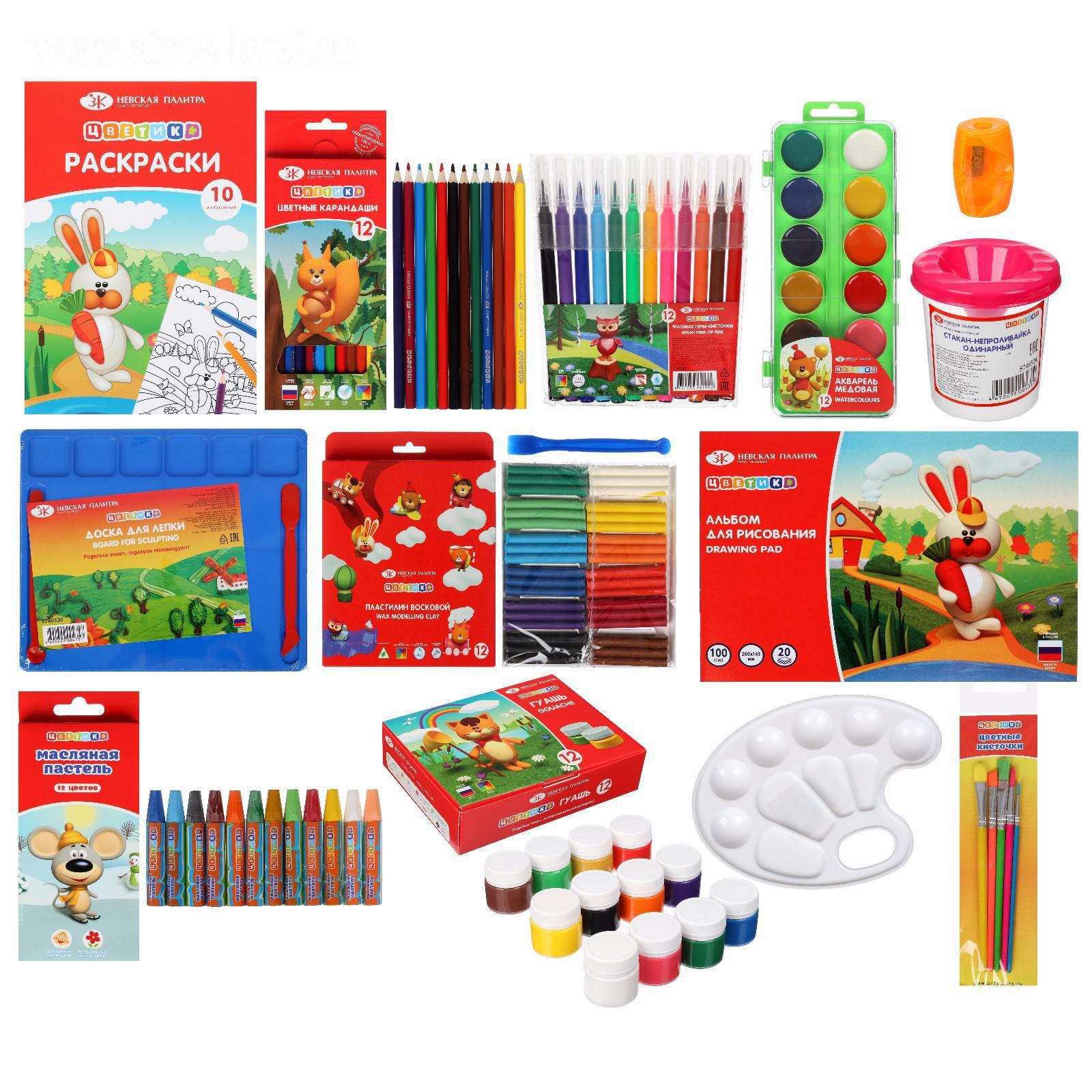Набор для детского творчества "Цветик", 12 предметов (рисование и лепка) в рюкзаке, раскраска в подарок, ЗХК "Невская палитра"