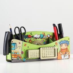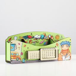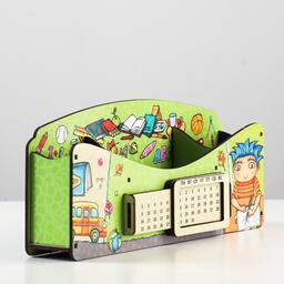 Органайзер для канцелярных предметов "Школа удобств", вечный календарь, цветной, зелёный