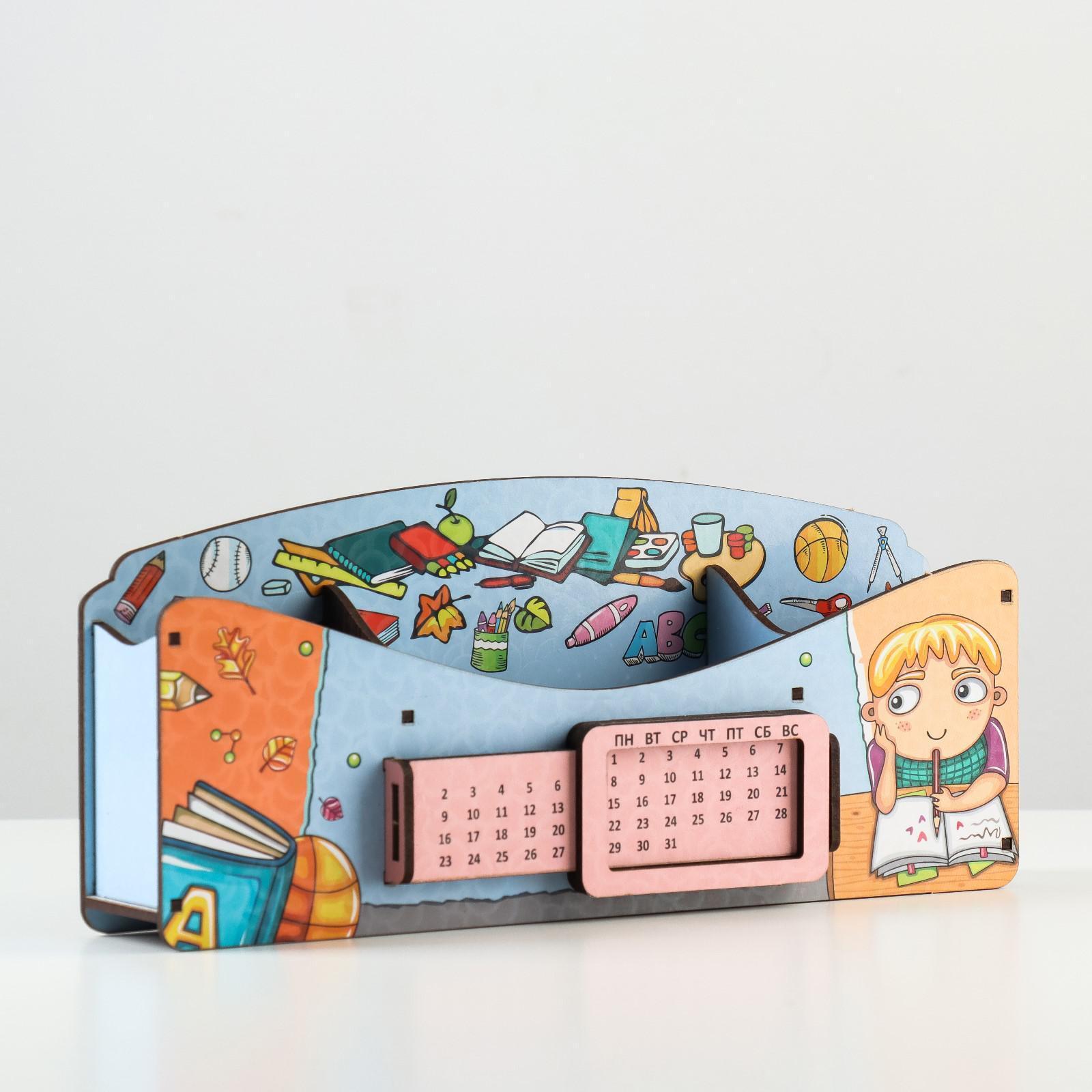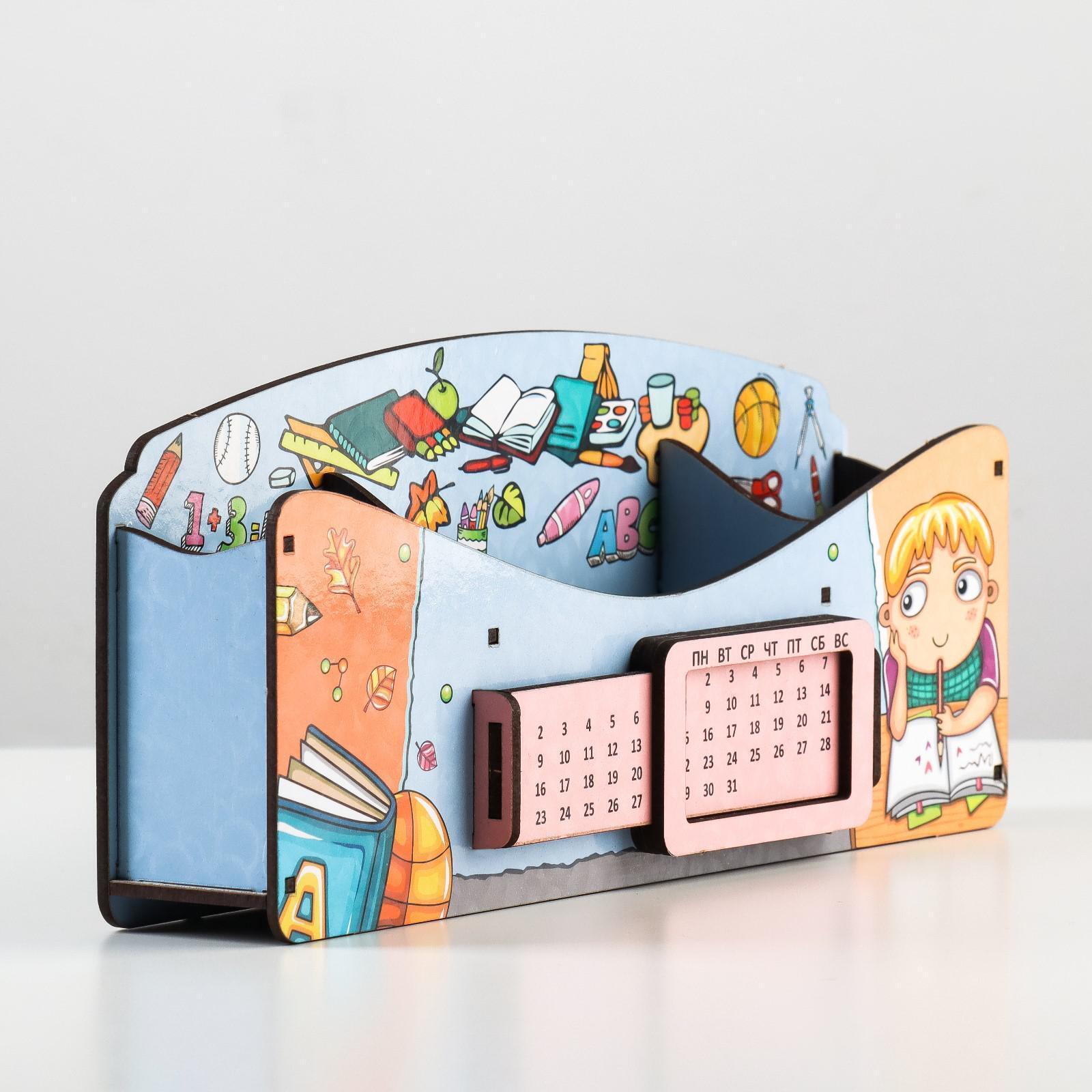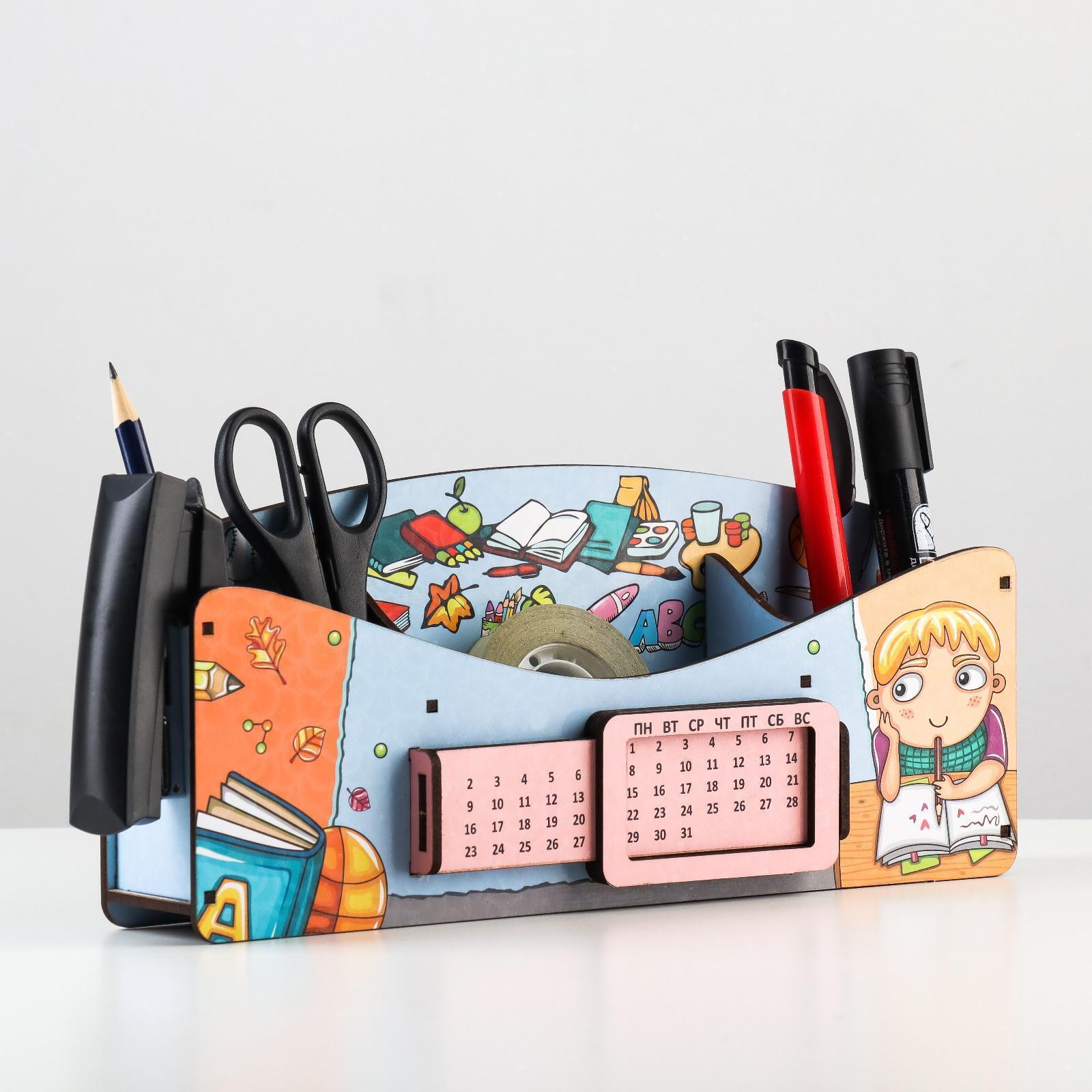 Органайзер для канцелярных предметов "Школа удобств", вечный календарь, цветной, голубой