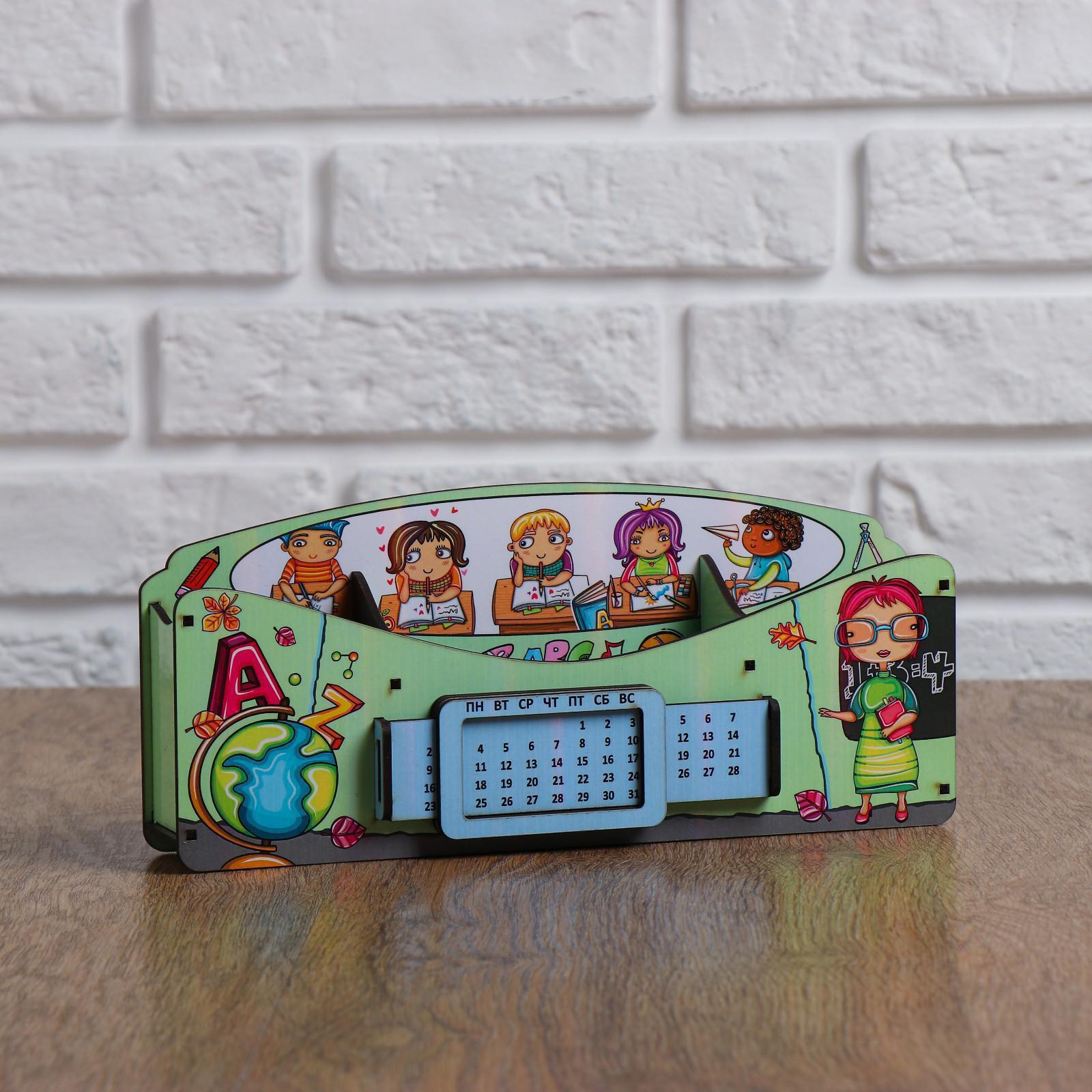 Органайзер для канцелярных предметов "Выбор отличницы", вечный календарь, цветной, салатовый