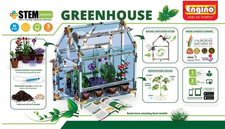 Набір комплектується навчальним посібником, що містить: цікаві факти з історії сільського господарства; введення в біологію рослин, фотосинтез і життєвий цикл рослин; огляд типів теплиць.