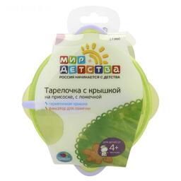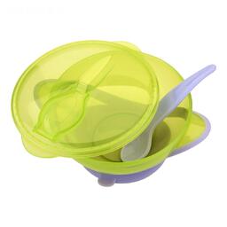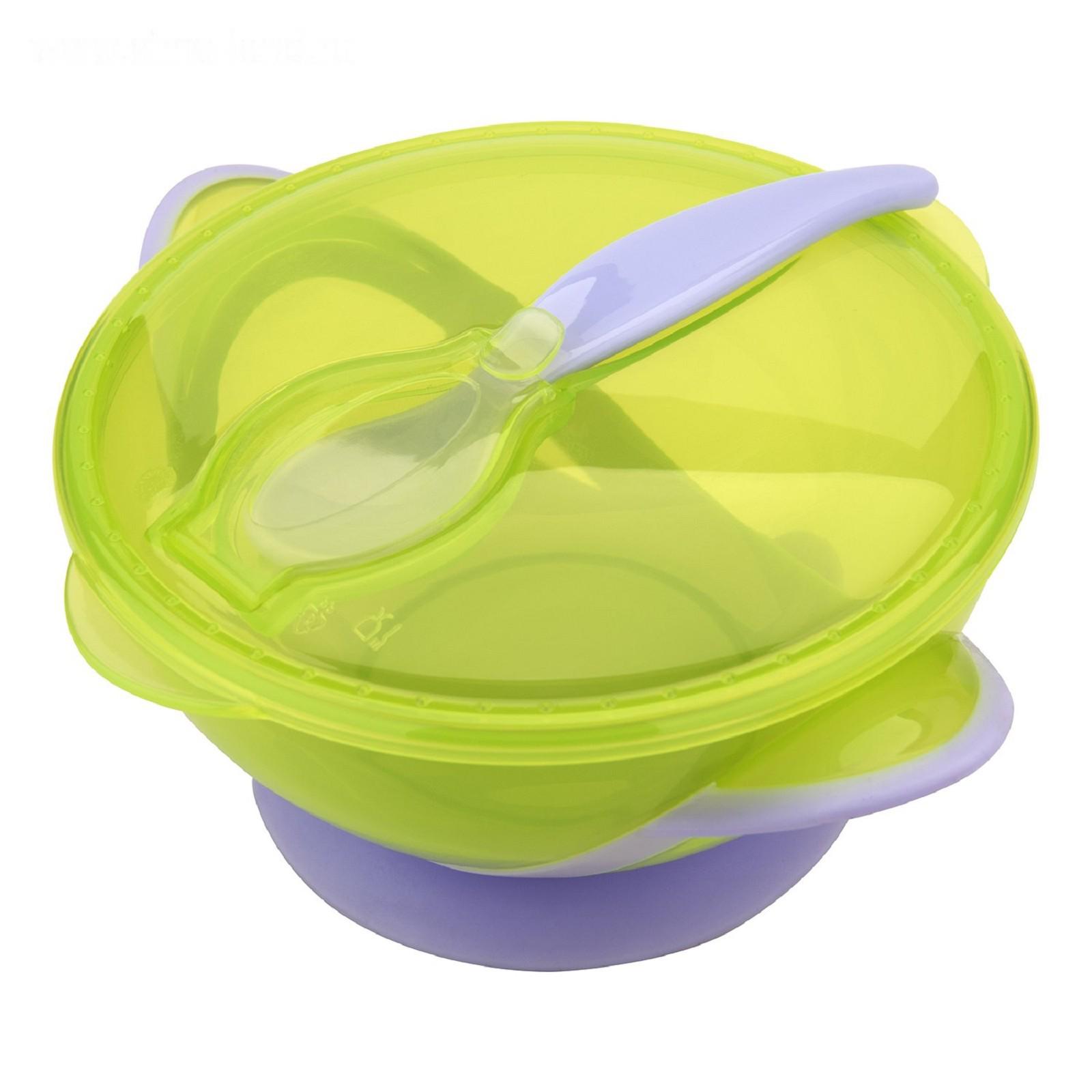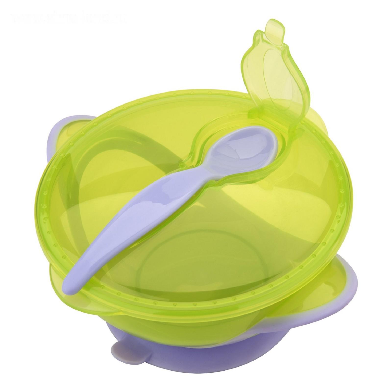 Набор для кормления, 3 предмета: тарелка на присоске, крышка, ложка, от 4 мес., цвет зеленый