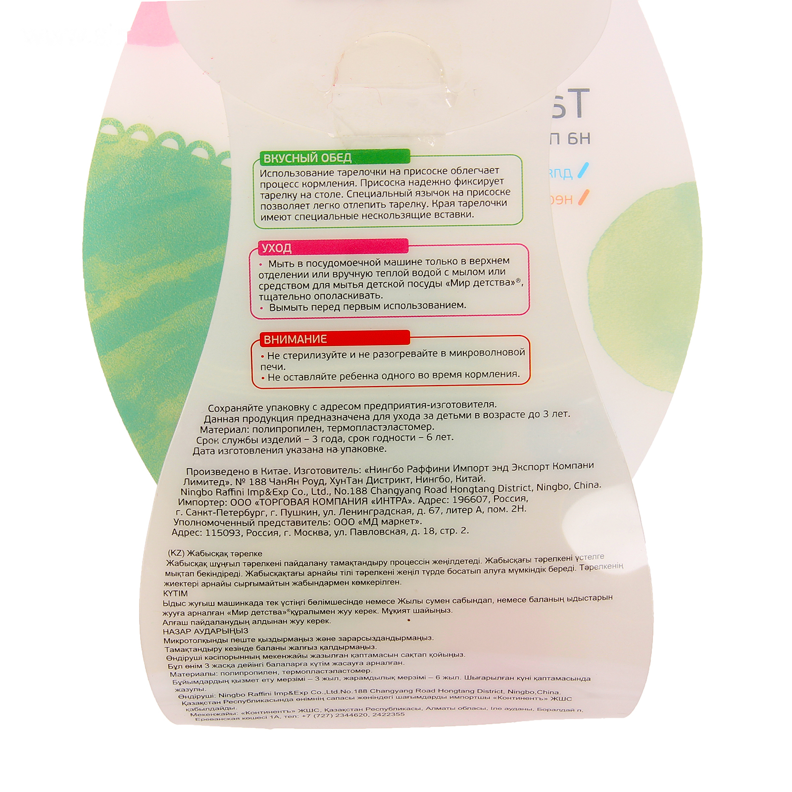 Детская посуда подходит для кормления ребёнка и самостоятельных приёмов пищи малышом. Пластиковое изделие не бьётся и мало весит.