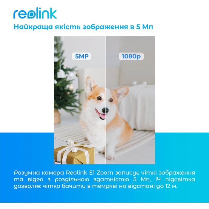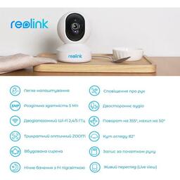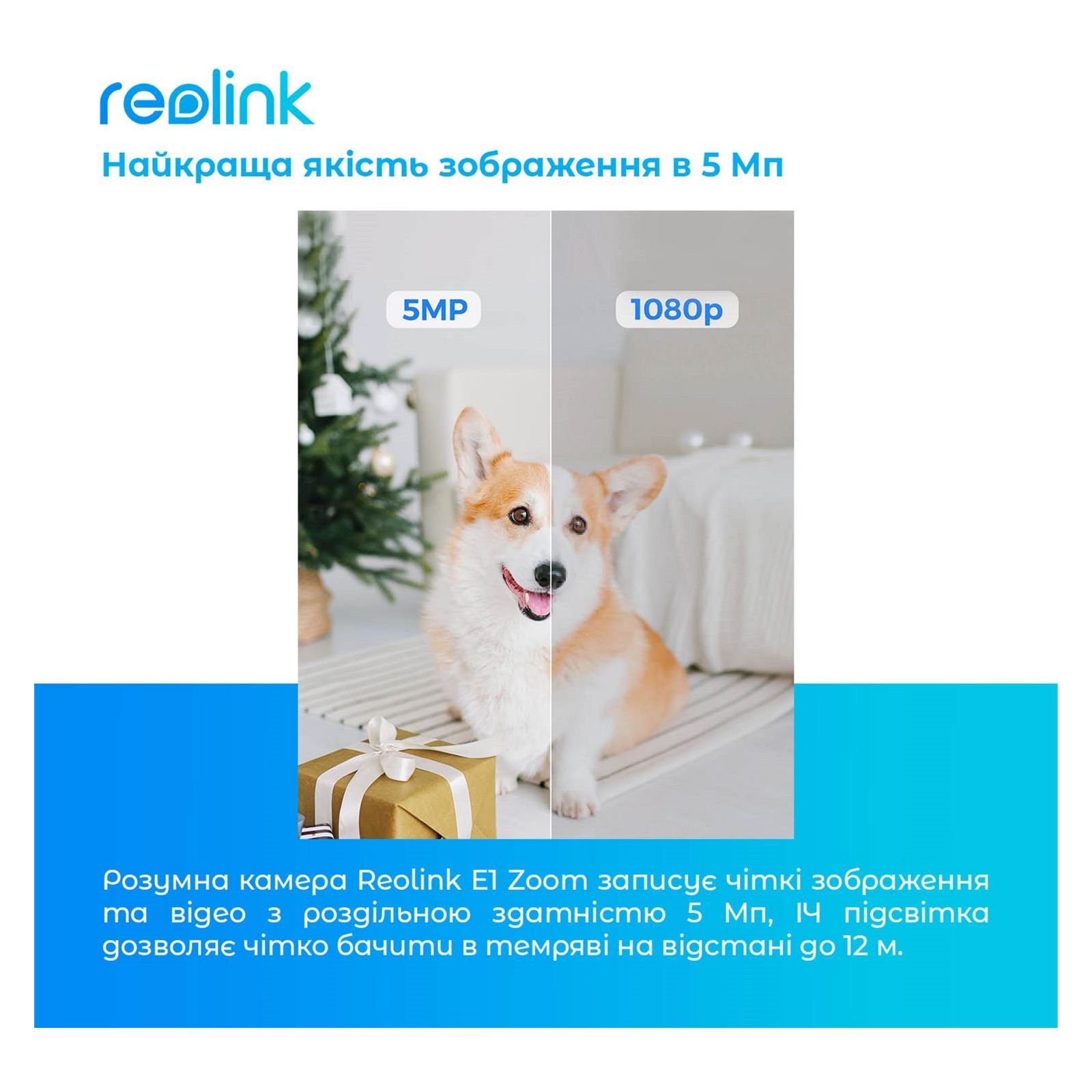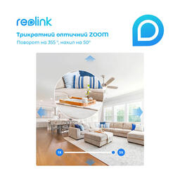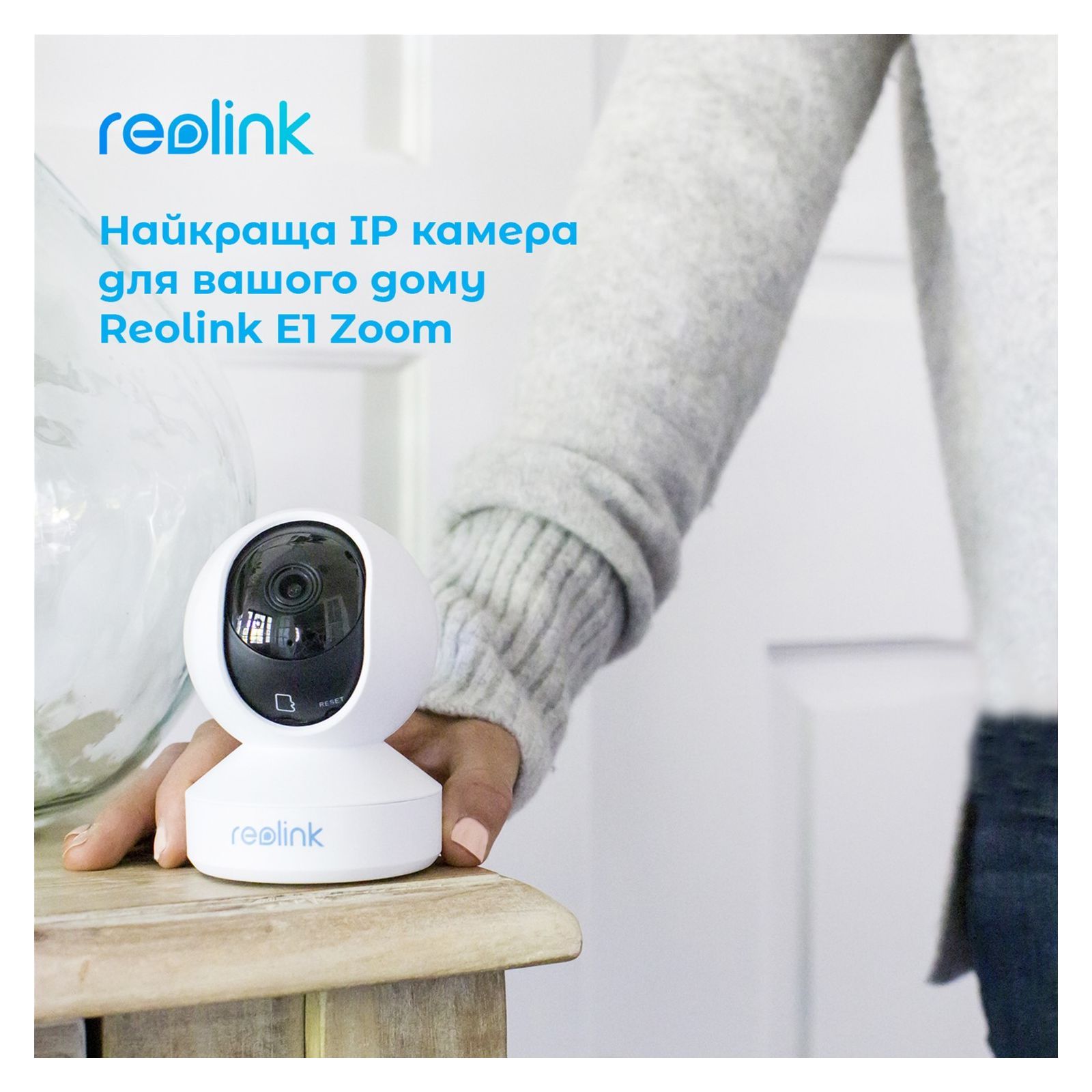 Камера Reolink E1 Zoom - настільки функціональний пристрій, що її буде достатньо для організації відеоспостереження в невеликій квартирі. Поворотний корпус забезпечує панорамування на 355 ° та вертикальний нахил 50 °. При грамотному монтажі (наприклад, на стелі в центрі кімнати) камера практично не матиме сліпих зон.