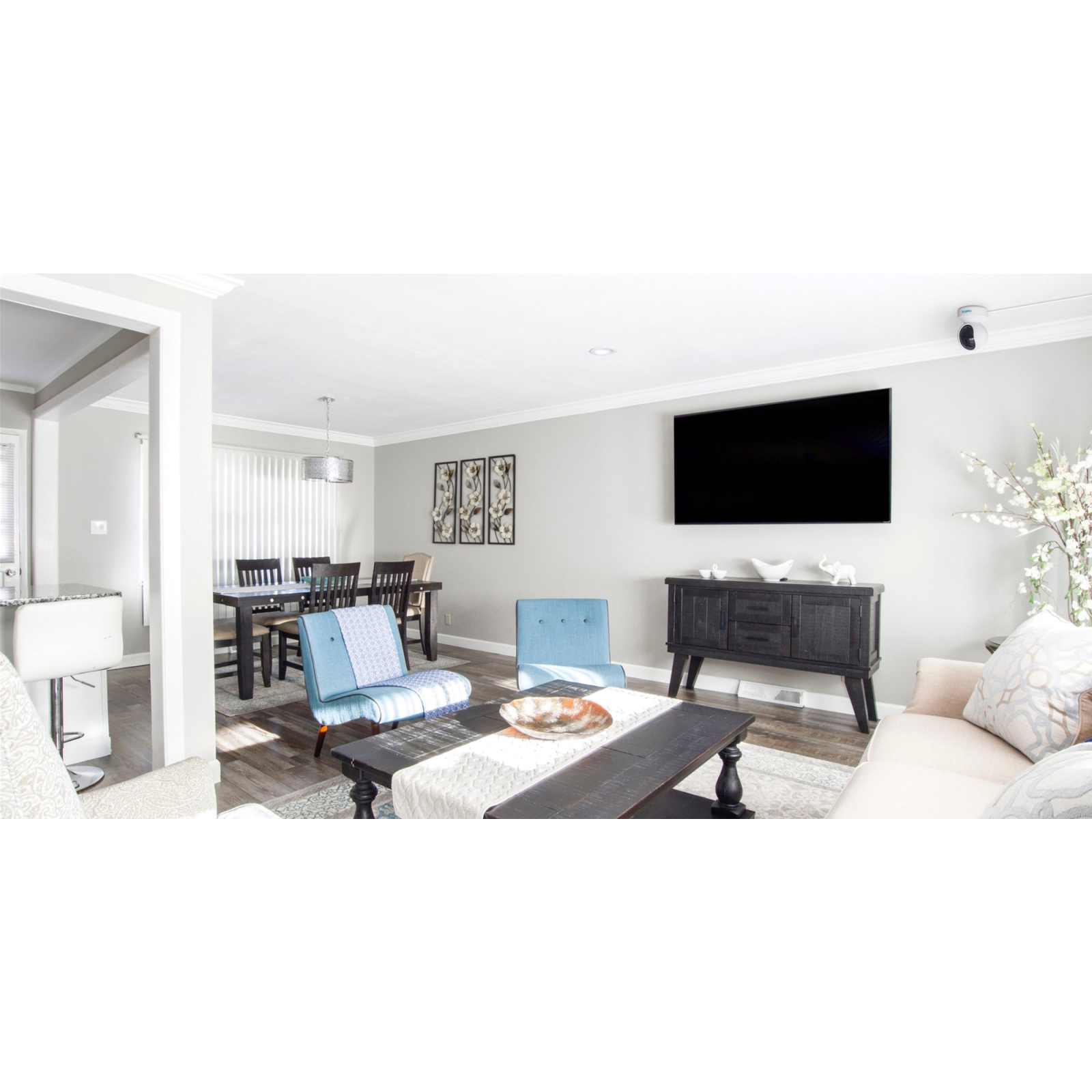 Сучасна та стильна камера Reolink E1 точно підходитиме до вашого інтер'єру! Поставте її на полицю або закріпіть на стелі, щоб вона забезпечила панорамний огляд.