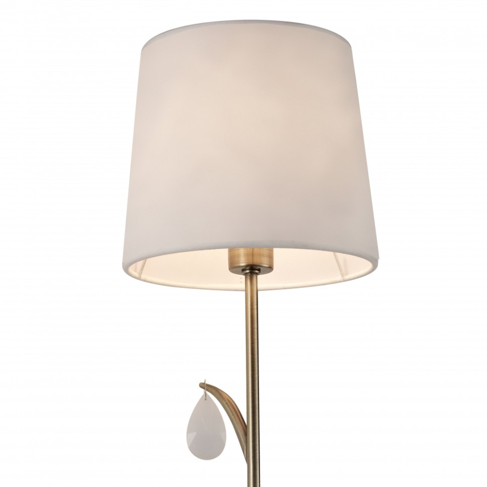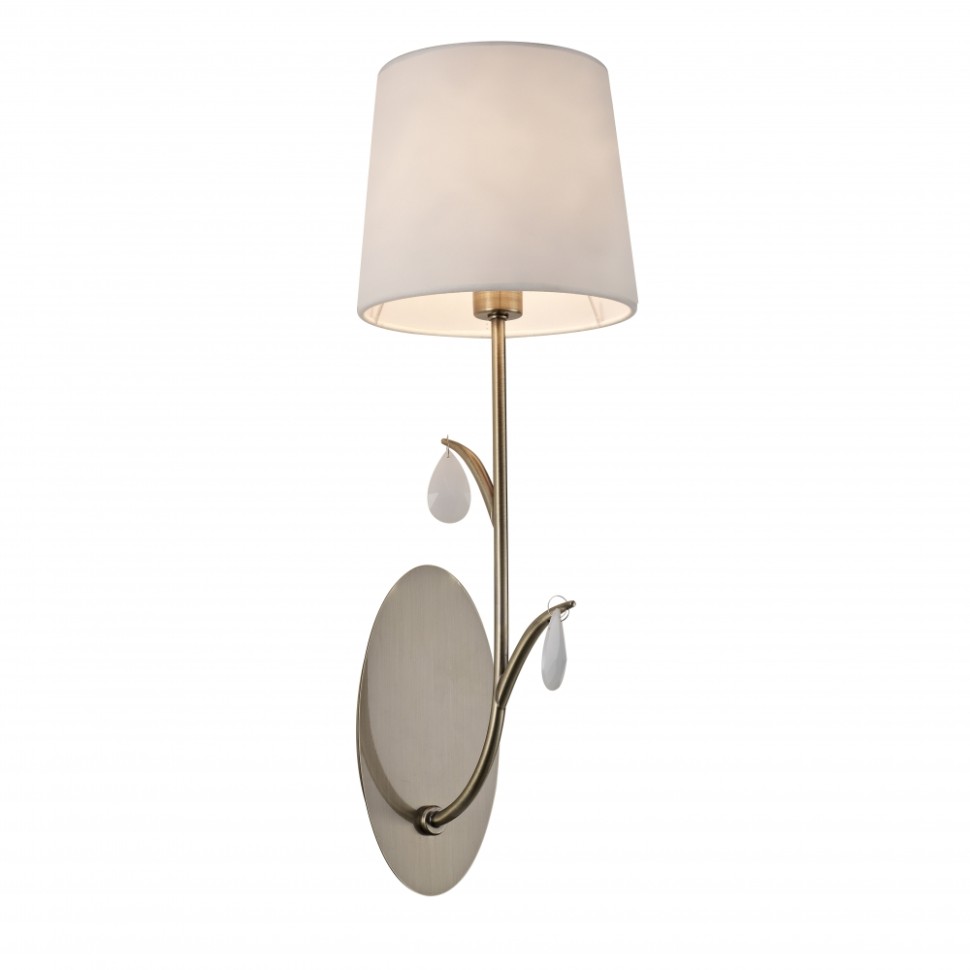 Настенный светильник испанской компании MANTRA из металла цвета латунь. Плафон из ткани белого цвета. Декоративные элементы из хрусталя молочного цвета Производство Испания