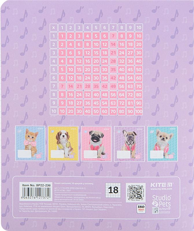 Зошит Kite Studio Pets , 18 аркушів, клітинка (SP22-236)