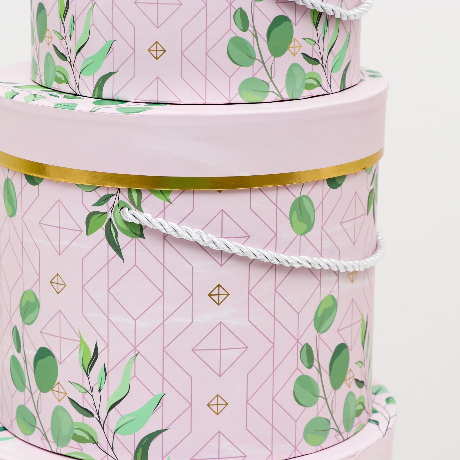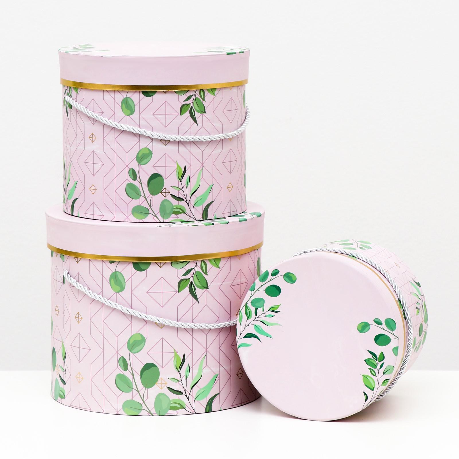 Набор круглых коробок 3 в 1, розовый, 23 x 19.5 - 17 x 14 см
