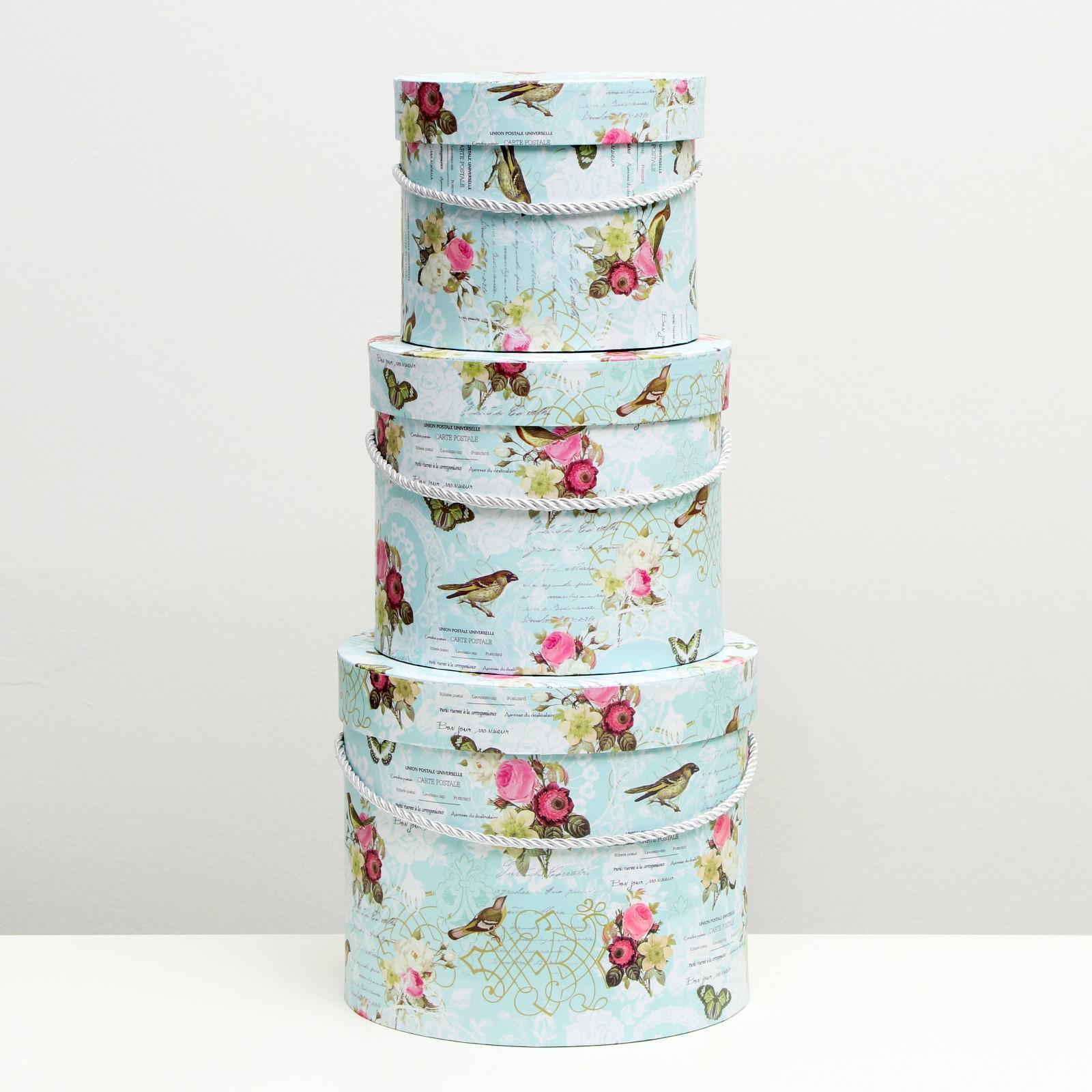 Набор круглых коробок 3 в 1, голубой, 23 x 19.5 - 17 x 14 см